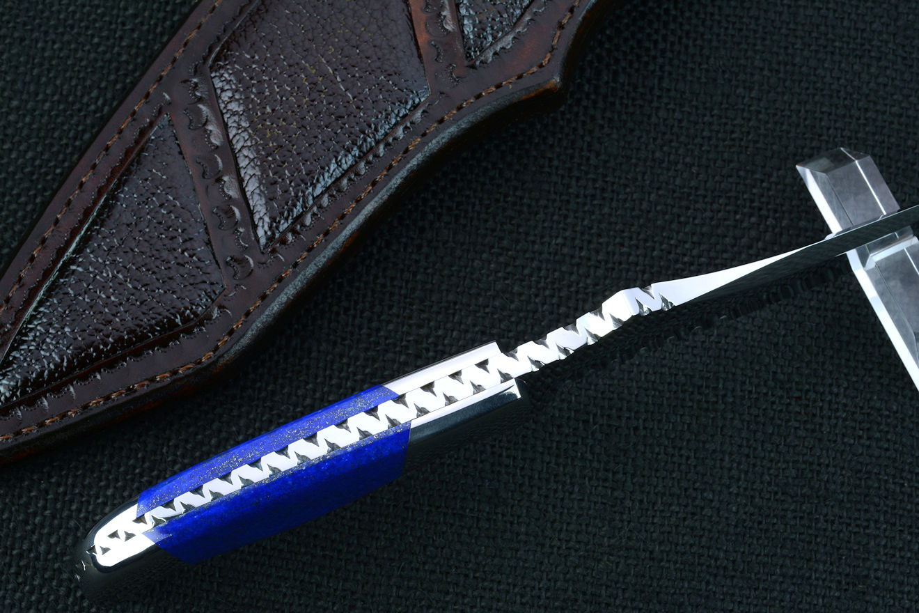 rise and 1.75" of my "Hammerhead" serrations. The blade is deeply and evenly hollow ground, and has