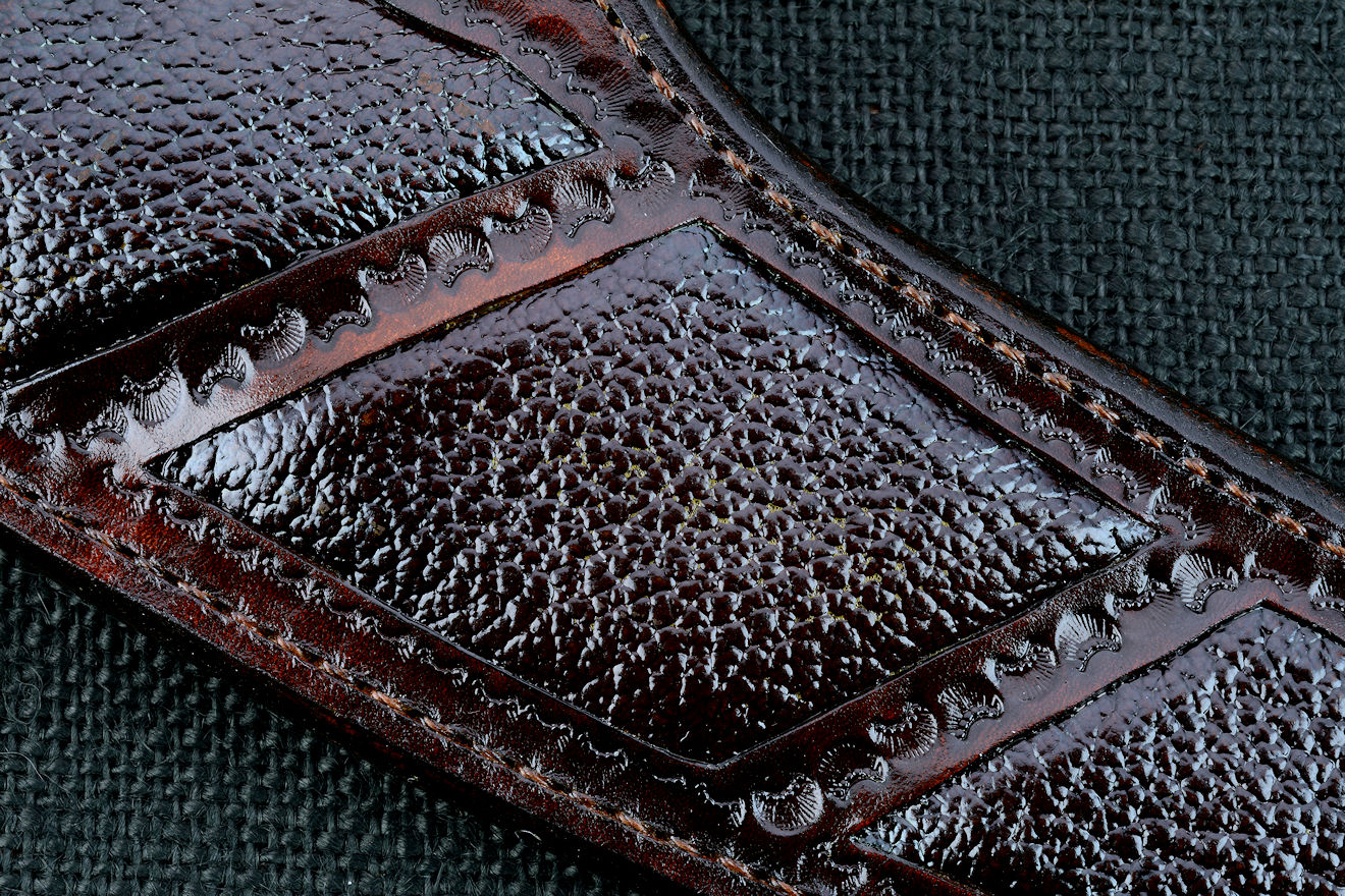 Sheath: Hand-carved leather shoulder inlaid with Buffalo (American Bison) skin