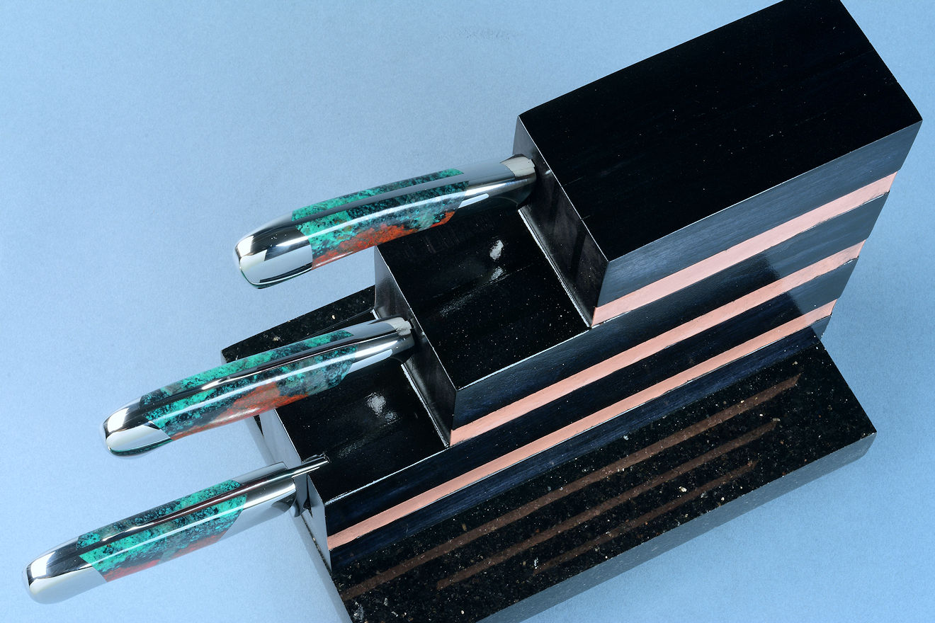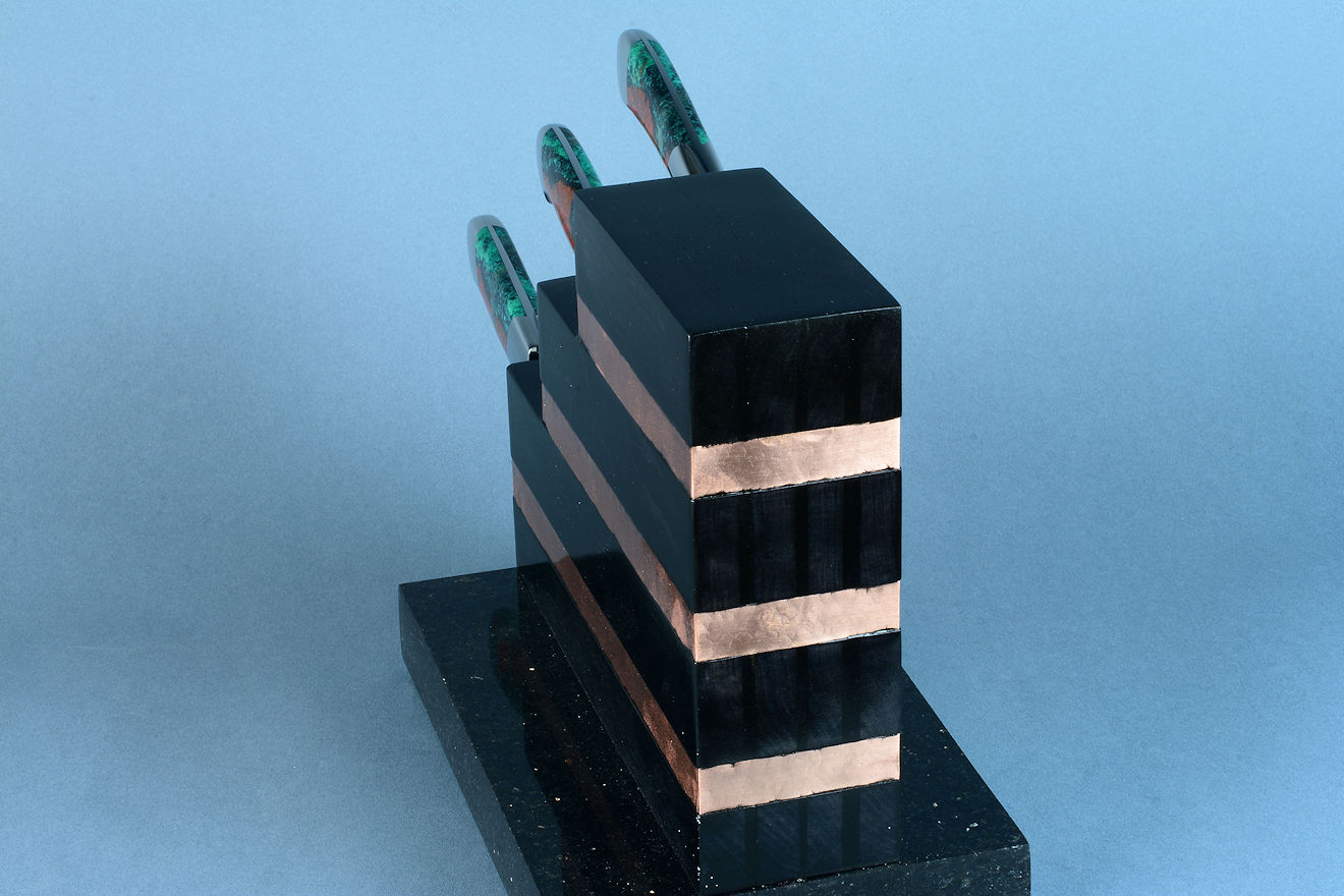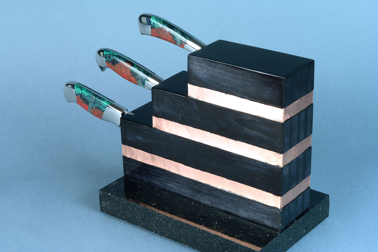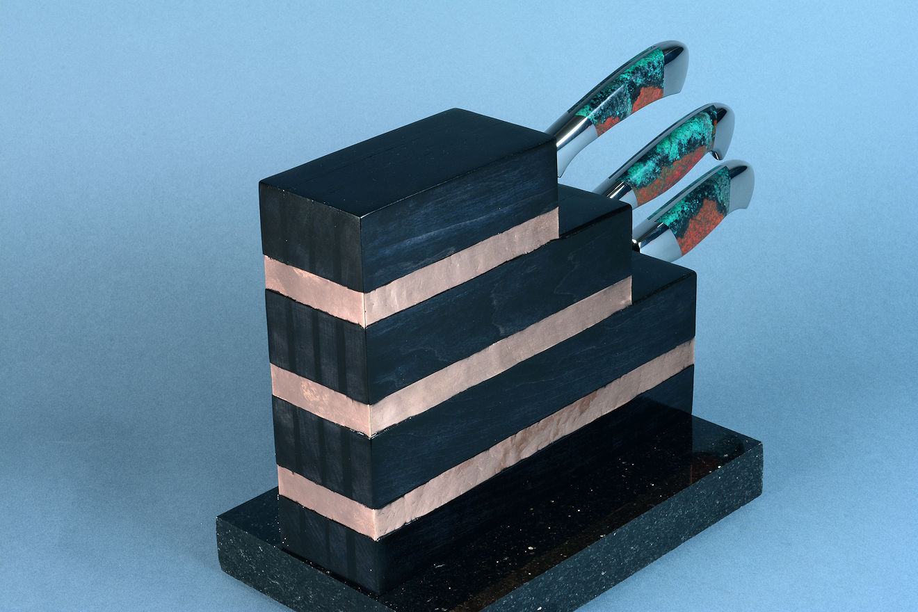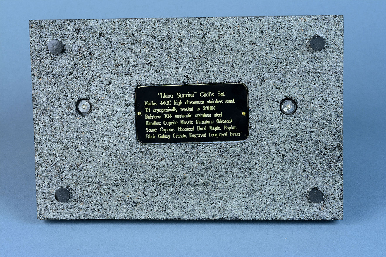 - Materials: Hard (Rock) Maple Hardwood, Poplar Hardwood, Copper sheet strip, Black Galaxy Granite (India), Neoprene feet, Engraved Black Lacquered Brass, 304 Stainless Steel Fasteners