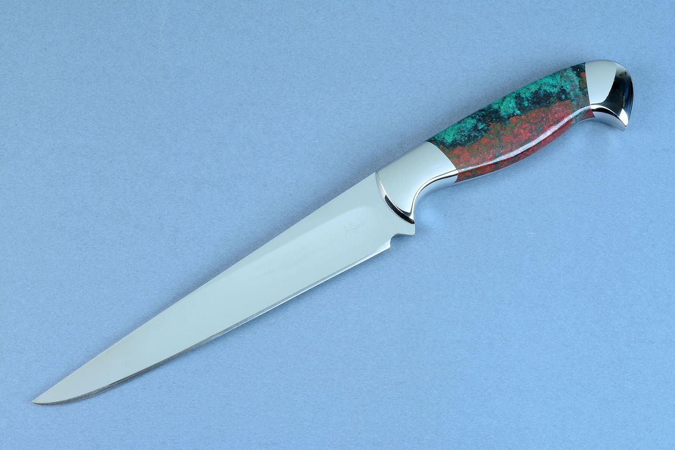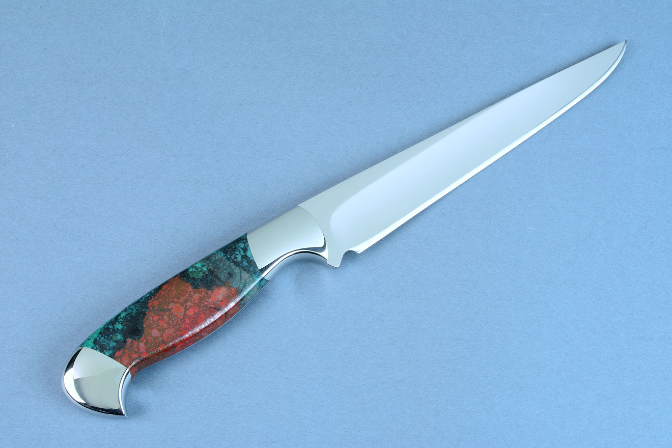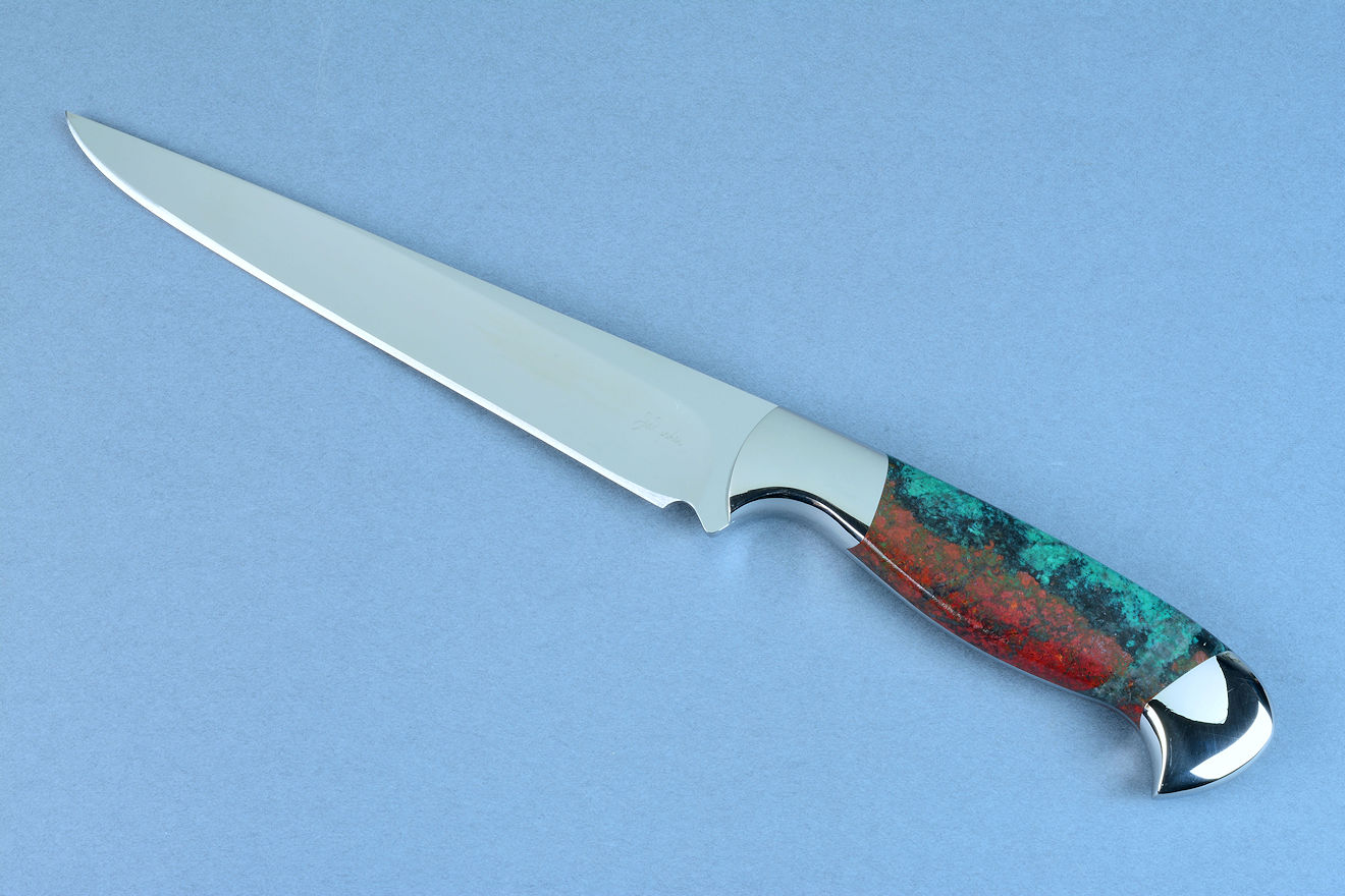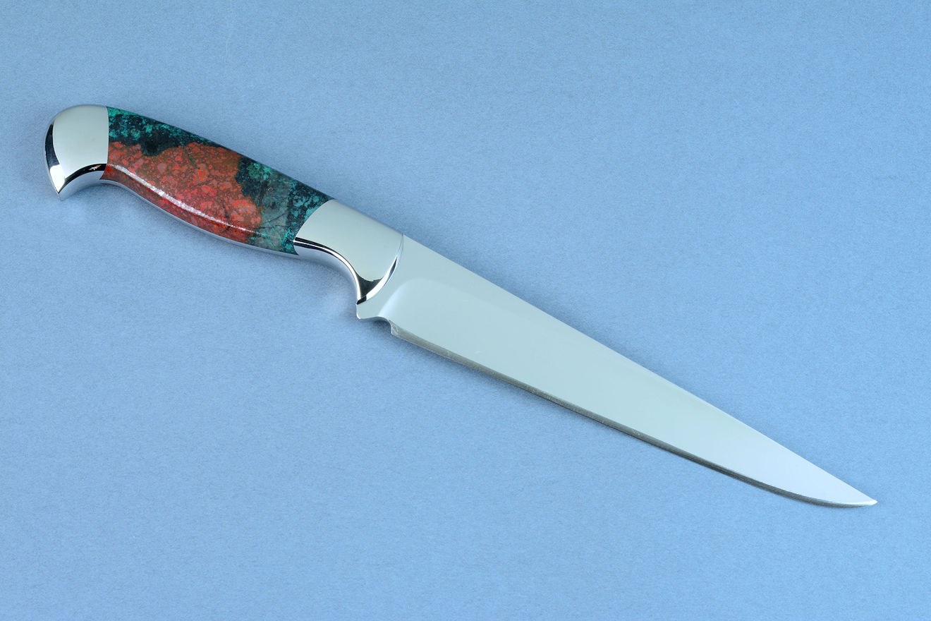 off of melon parts, filleting fish, or small cuts of meat. The blade