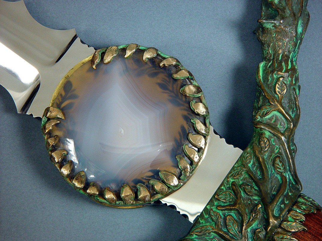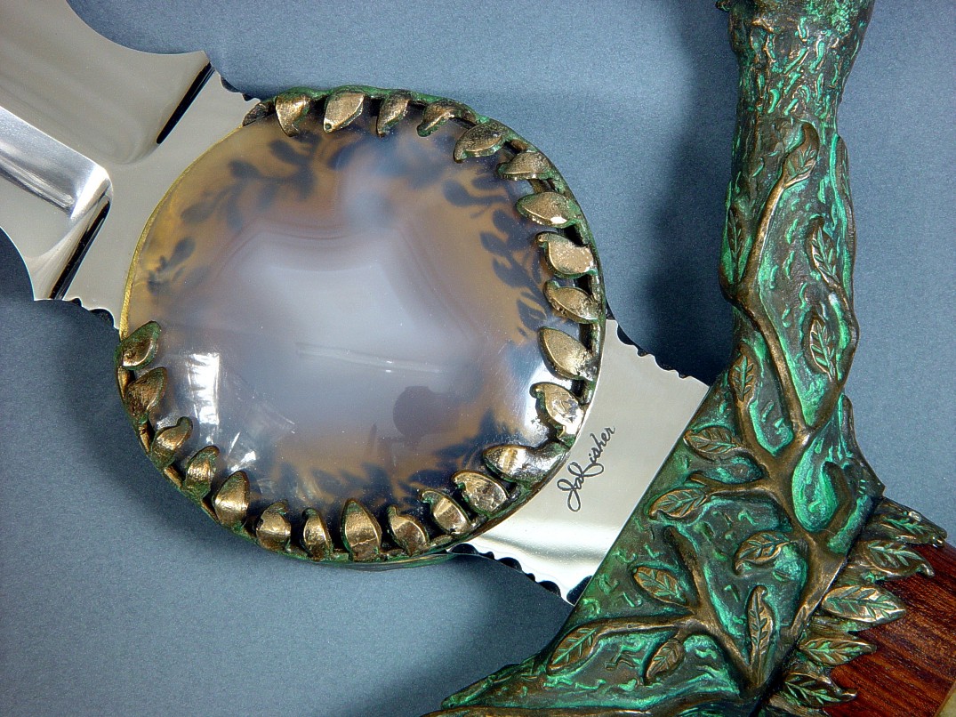 ricasso. The vine motif continues with a hand-carved lost wax cast