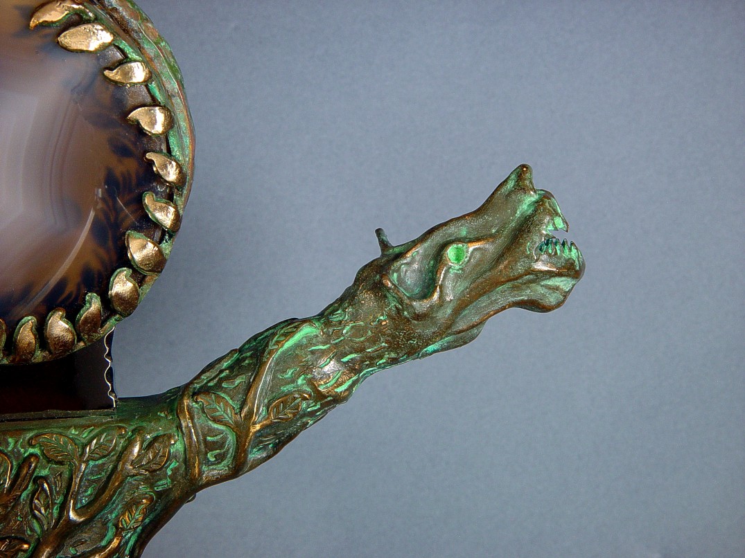 accented form which matches the beautiful deep green Nephrite Jade. You'll notice many of the fittings on this piece are