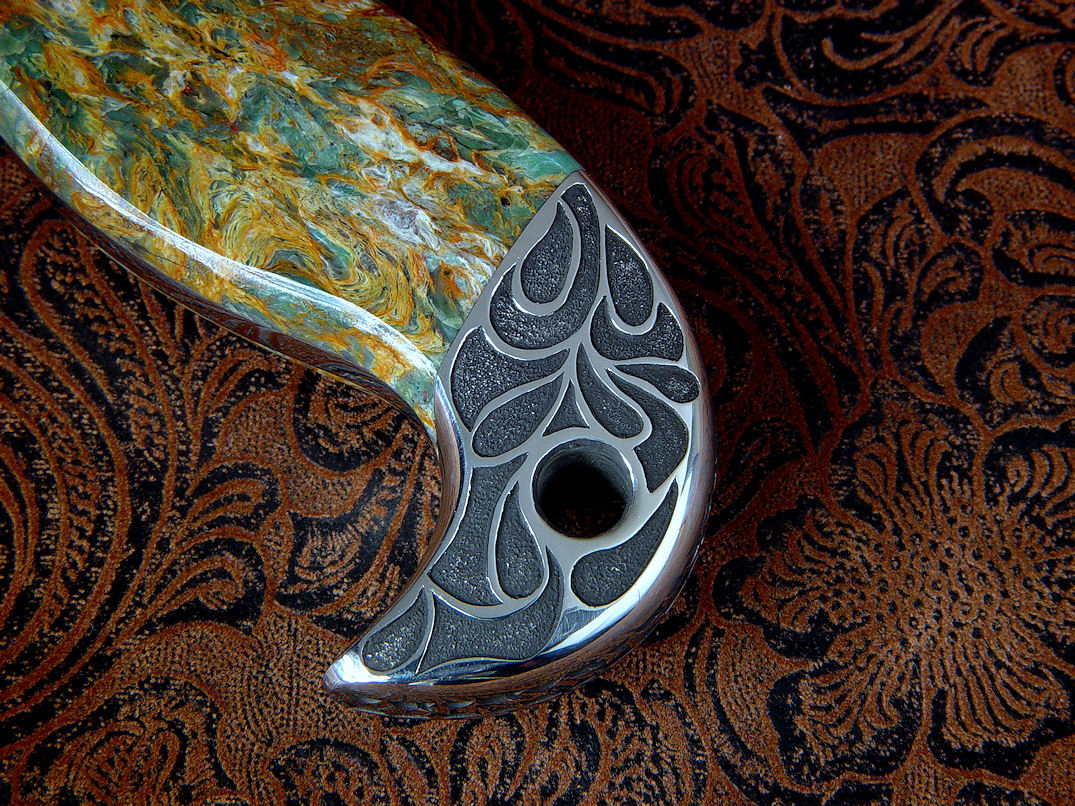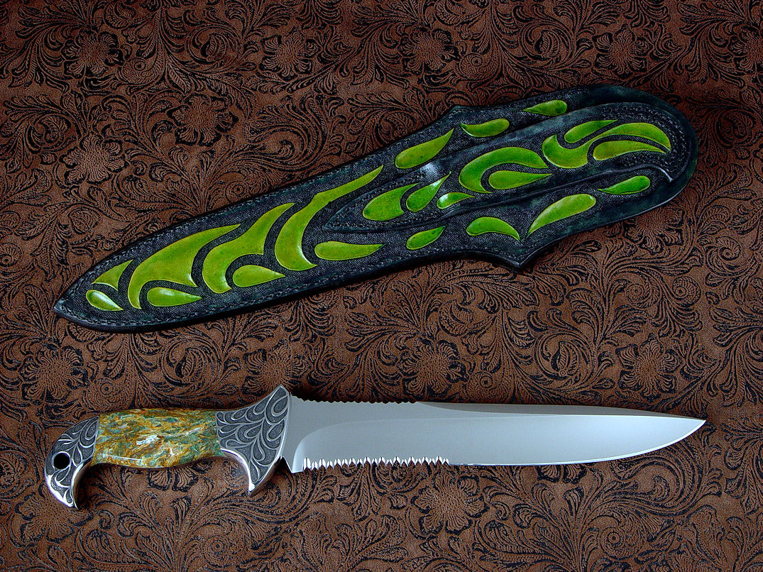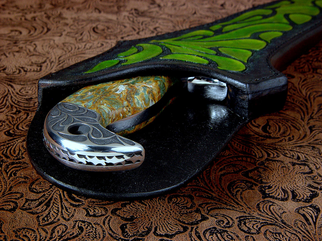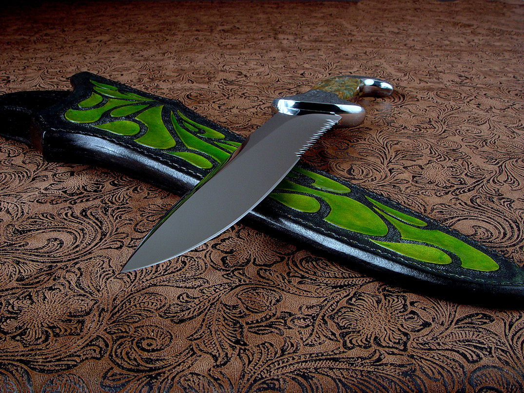 a bit of the character of the Plasma Agate handle. The sheath is