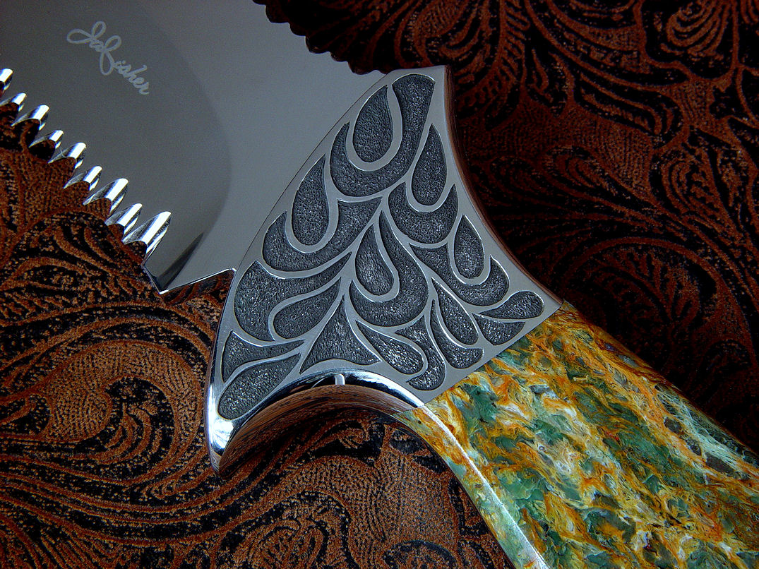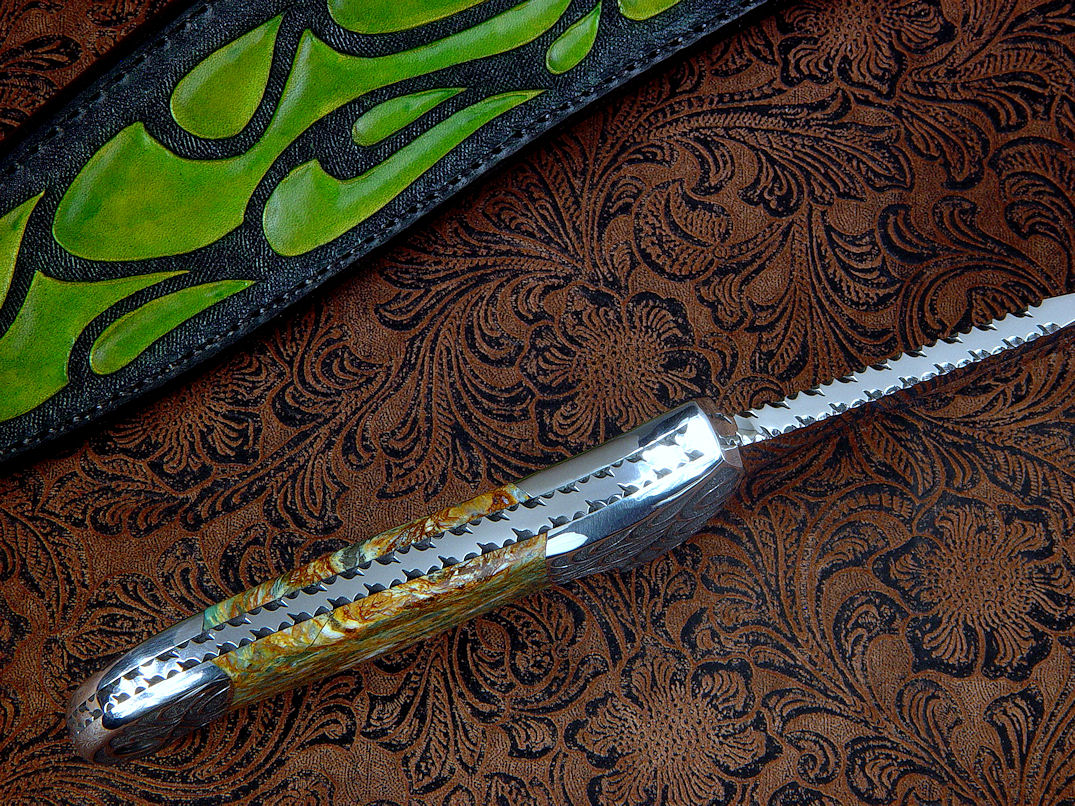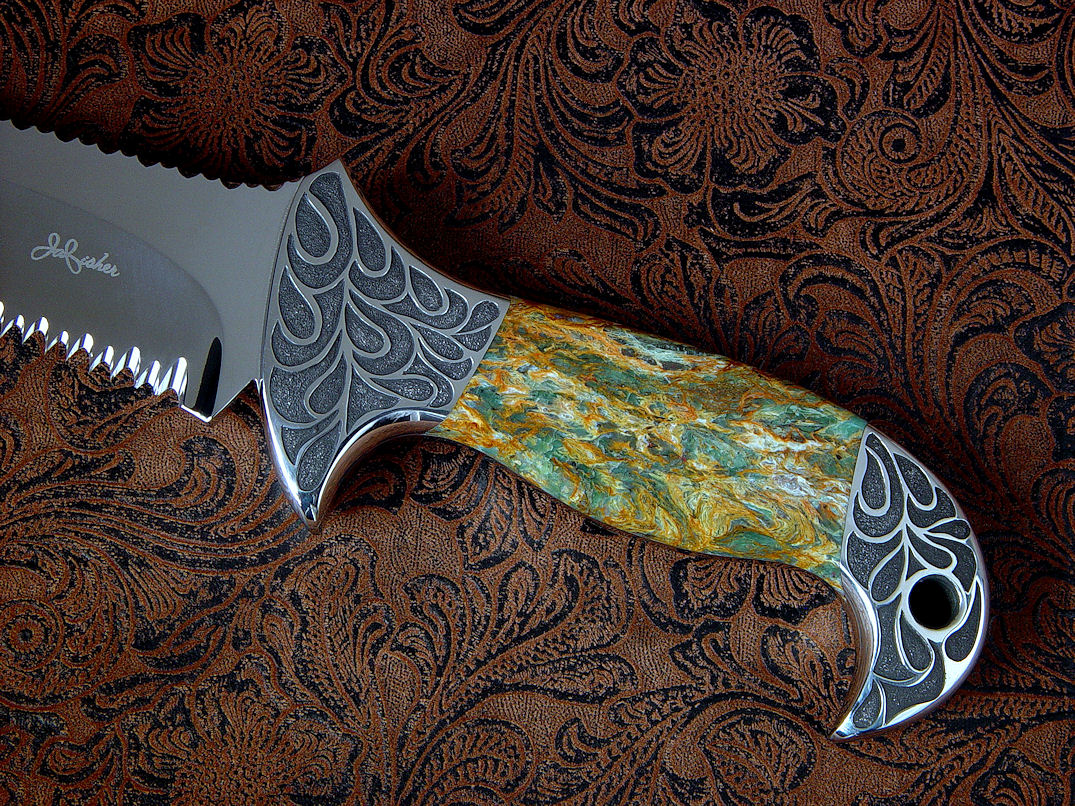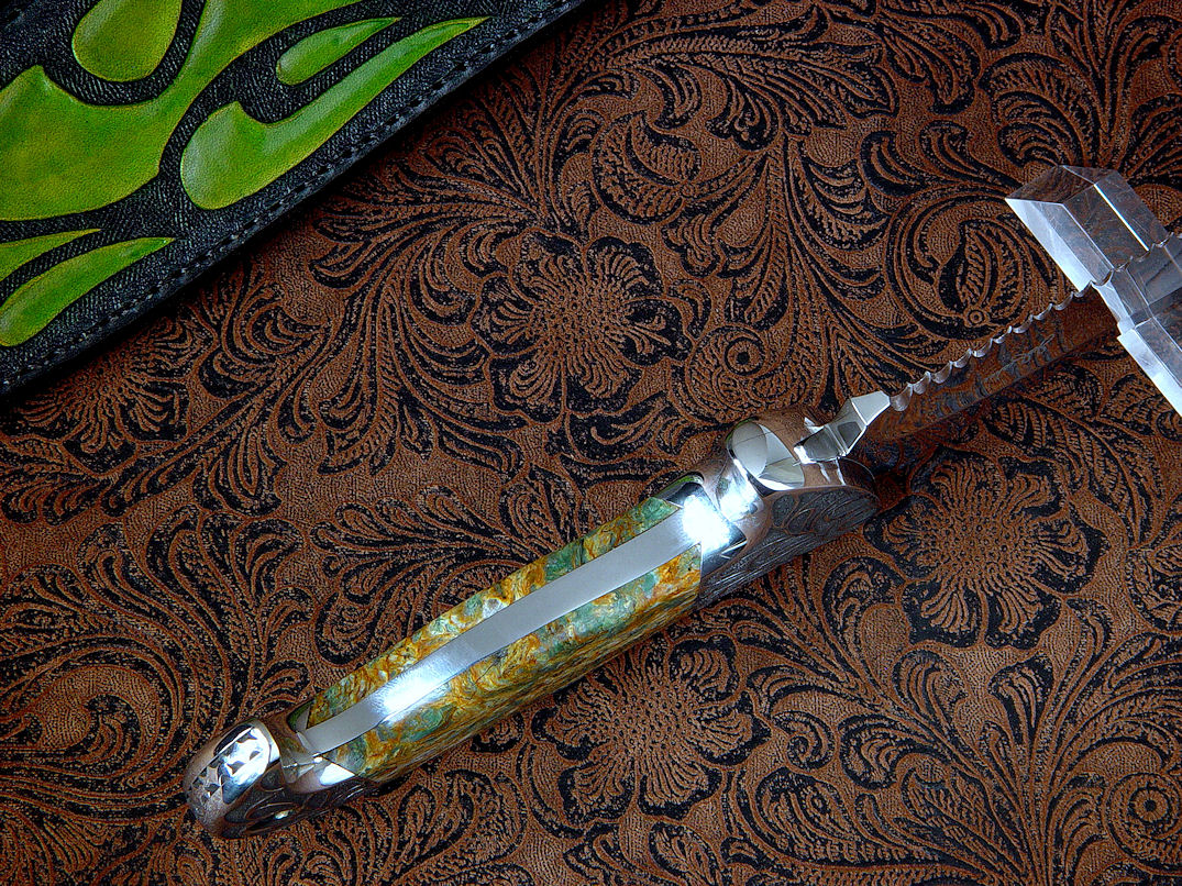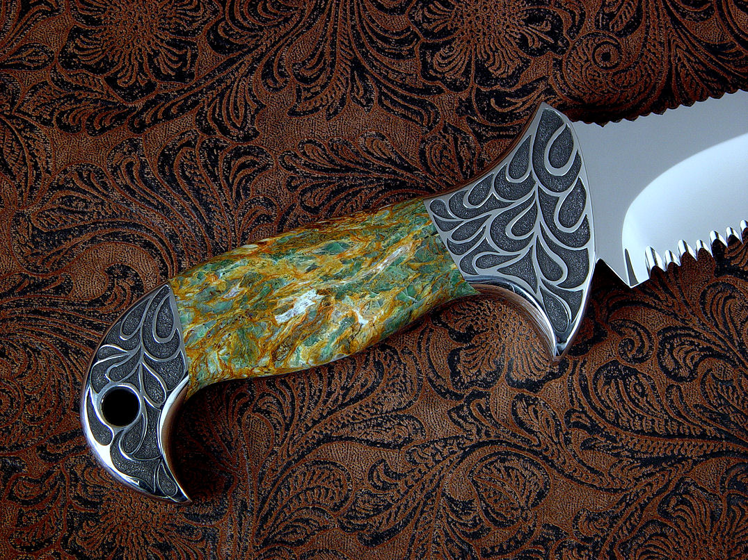 a bit of the character of the Plasma Agate handle. The sheath is