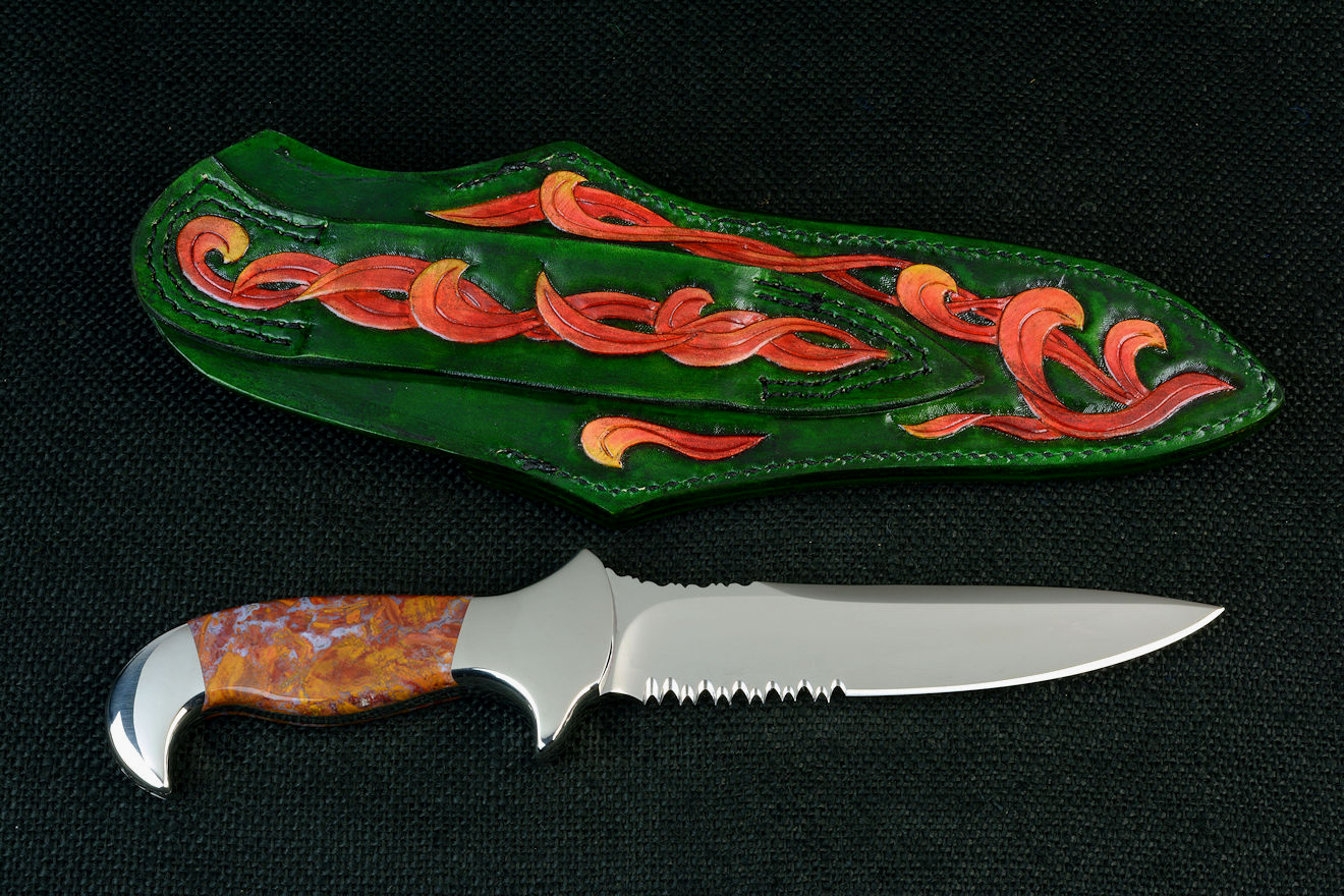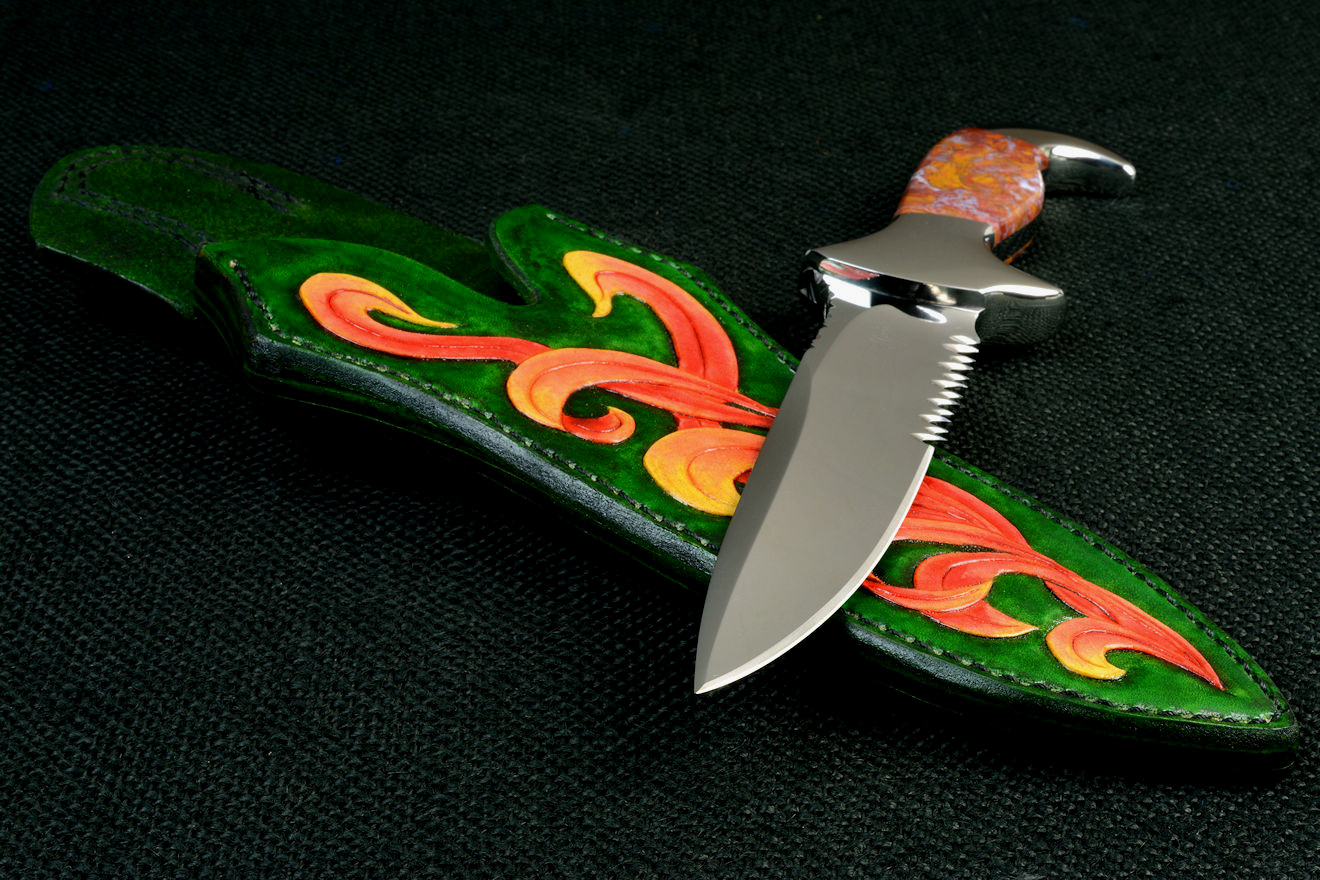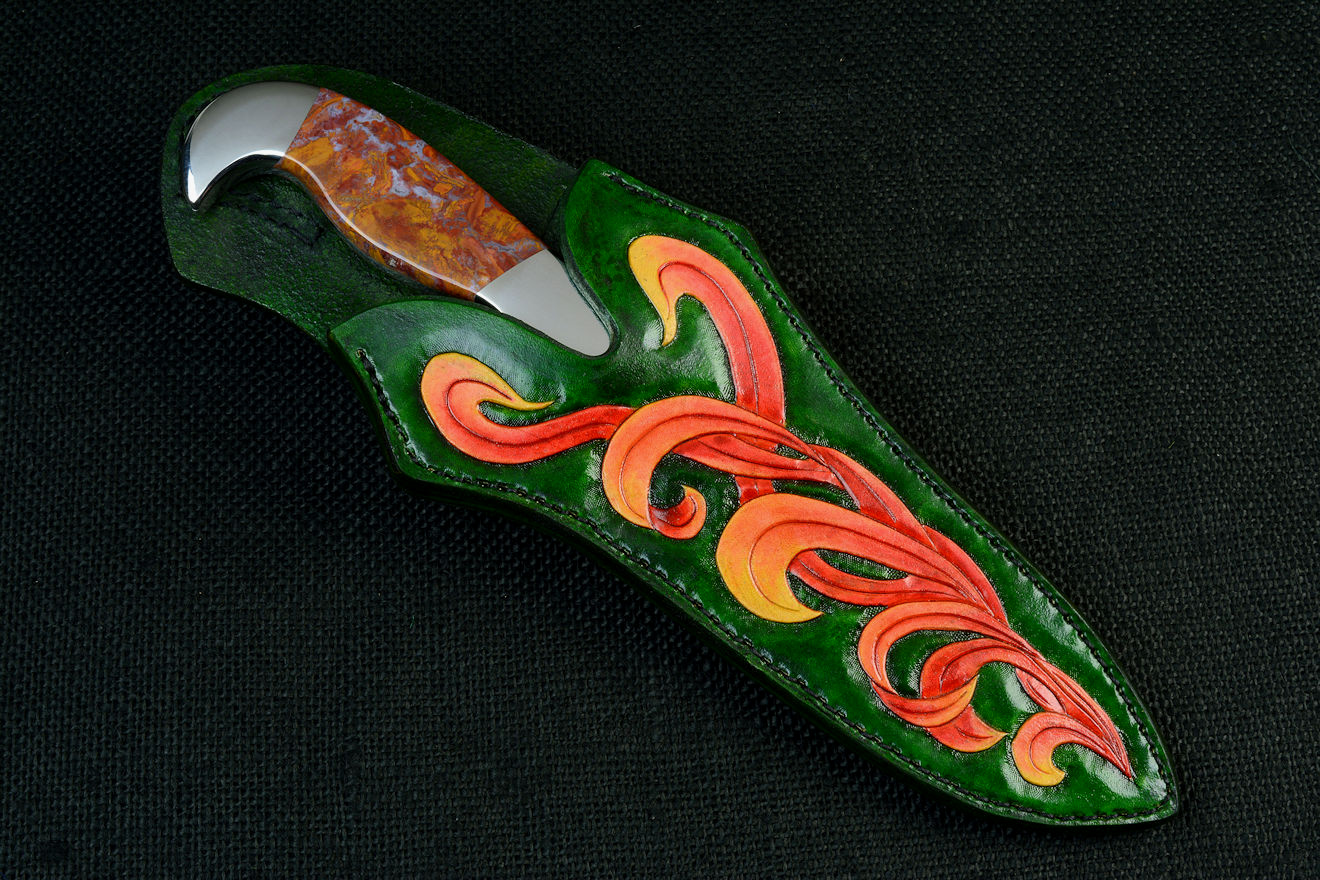 - Sheath: Hand-carved, Hand-dyed Leather Shoulder, stitched with nylon