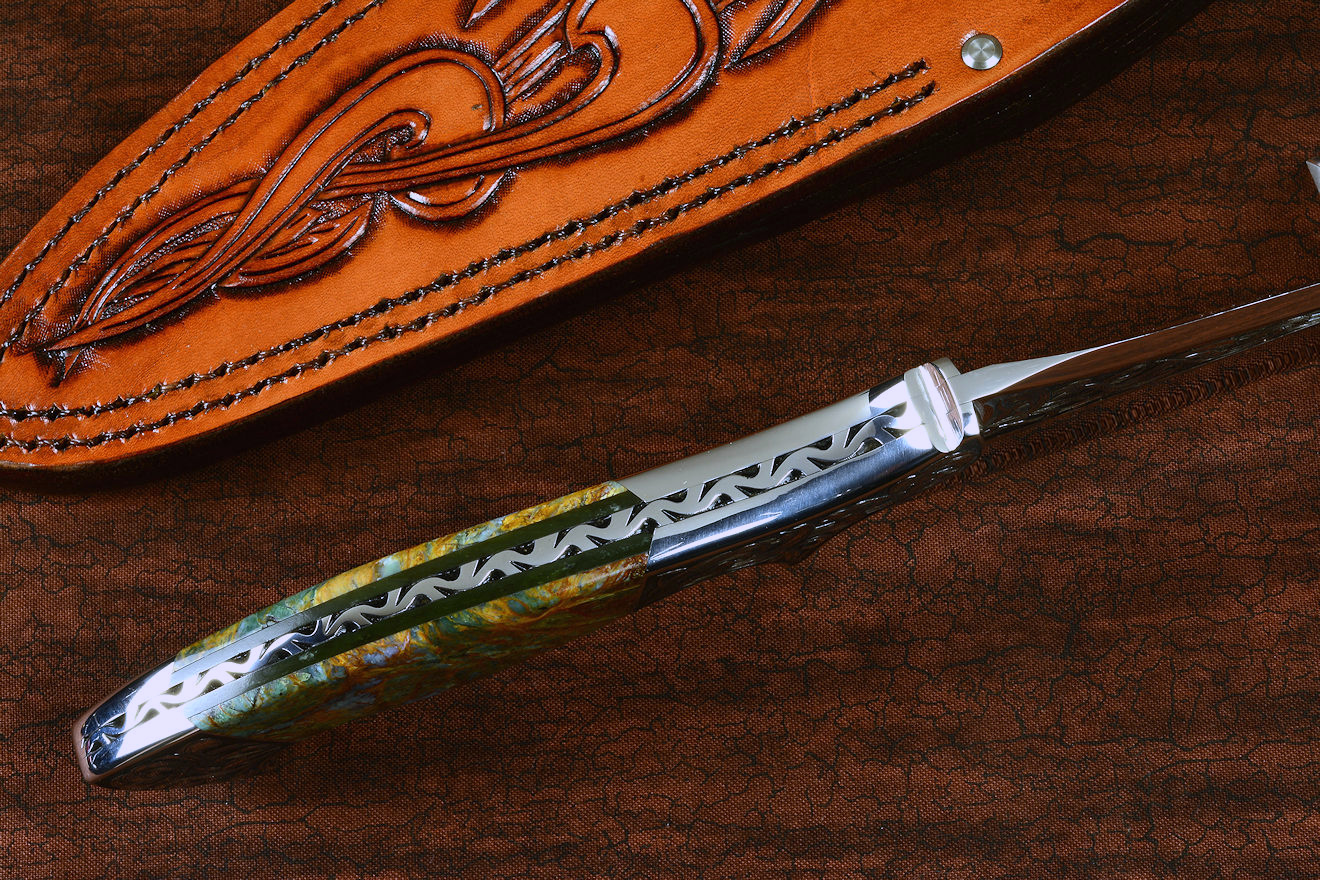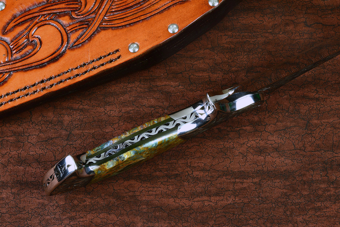 flats, and fully engraved stainless steel bolsters. The Malaka is a