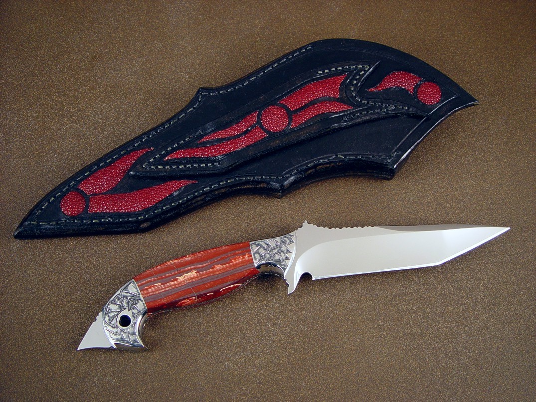 - Sheath: Hand-carved Leather inlaid with Stingray skin