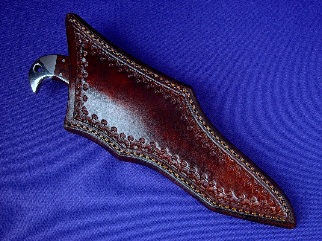 enough of the rear quillon to make unsheathing easy and fast. The belt loop is double-row stitched for strength,