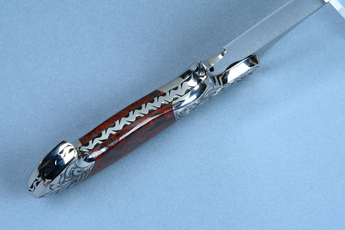 I truly enjoyed creating this entire piece. The exemplary form of the knife, the materials and treatment, the embellishment and casting: this is the reason I love knives. It's an honor to create these unique pieces for others who love knives, too.