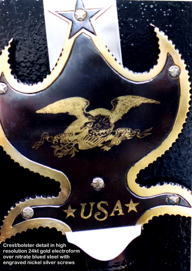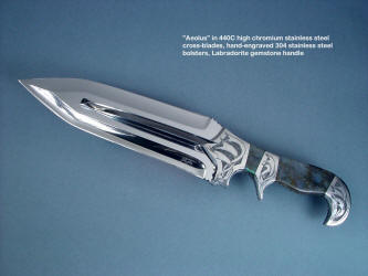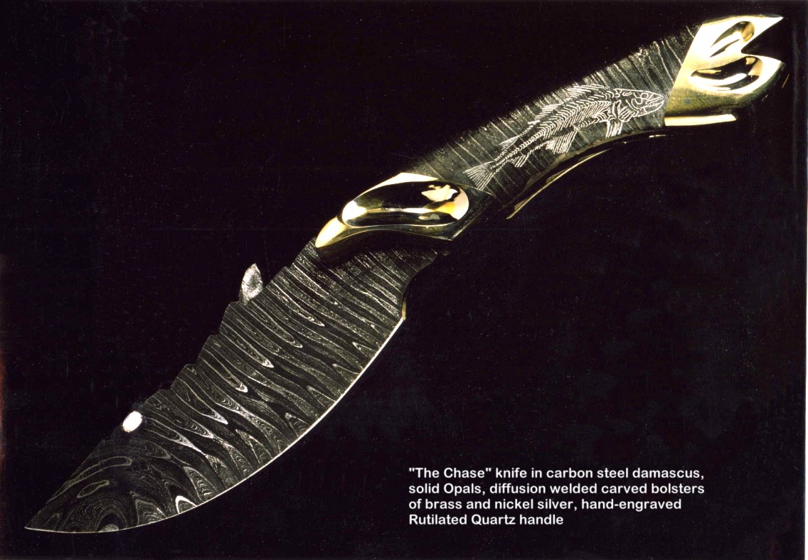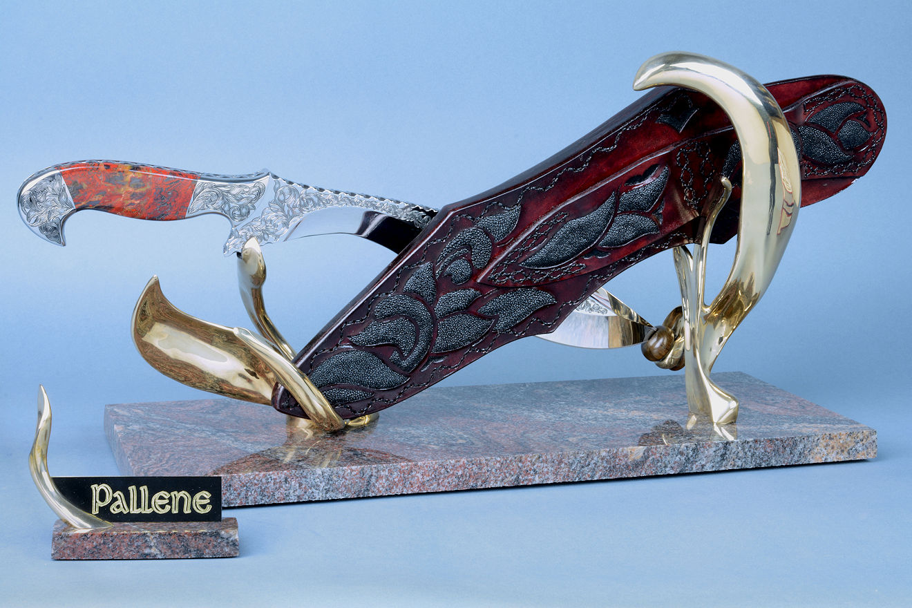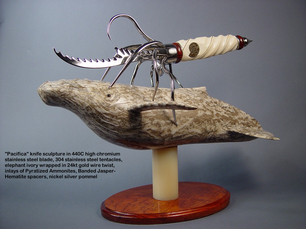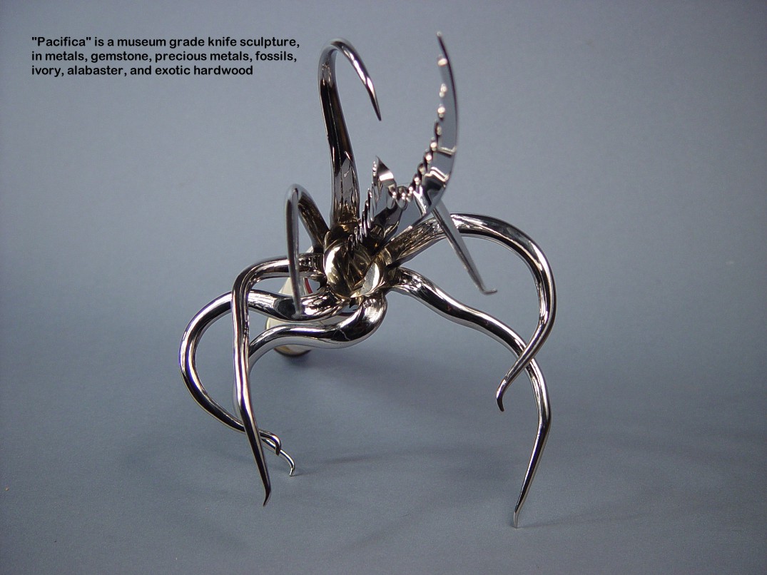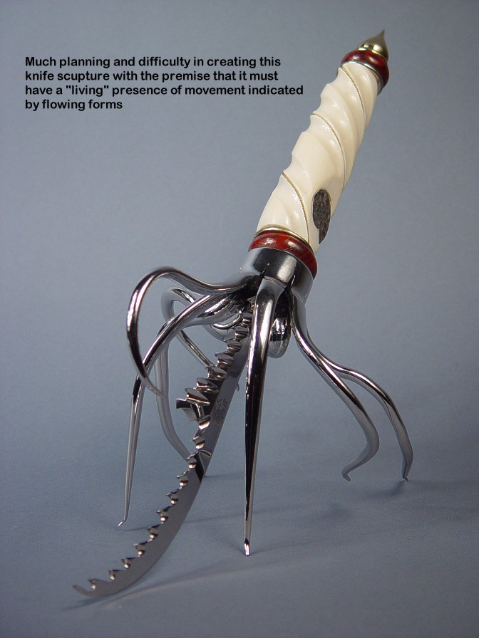 You won't see the term knife sculpture used in any reference, and it has always been my belief that this is the developmental cusp of my art and tradecraft. I won't go into great detail about the pieces on this page, and just let the photographs speak for themselves. I'll include links where more information and pictures may be found.