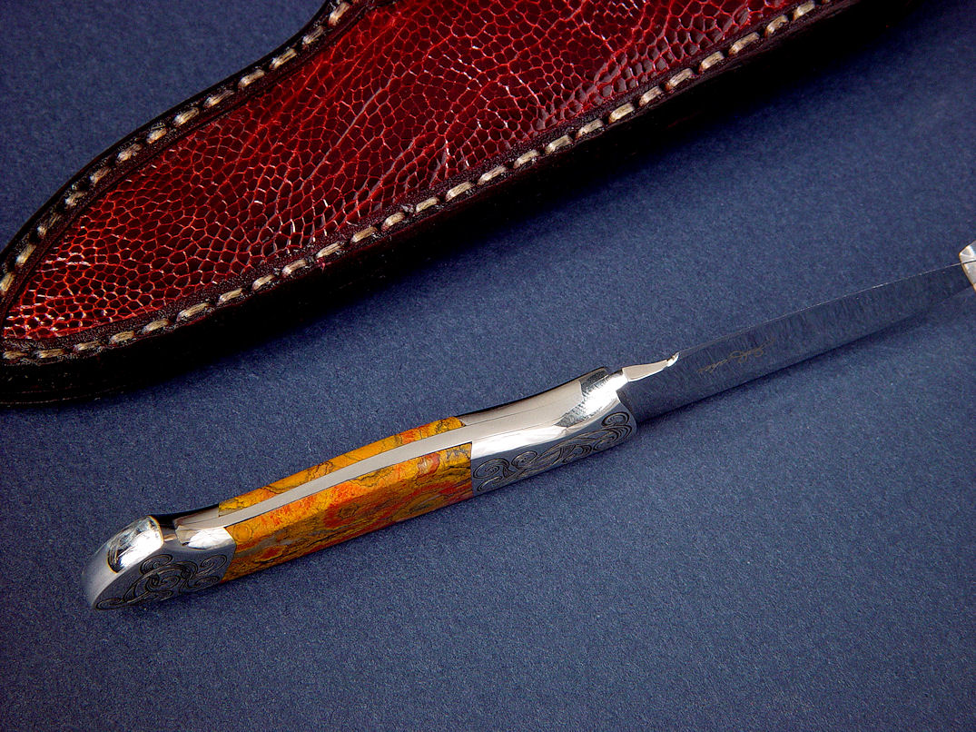 austenitic stainless steel and I hand-engraved the bolsters with a