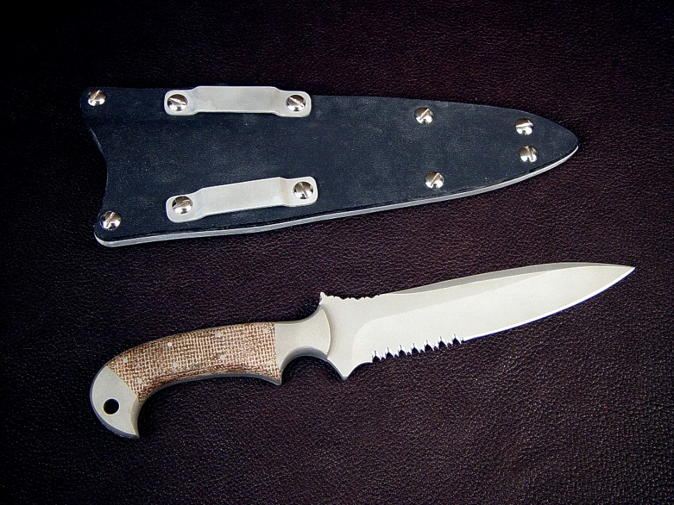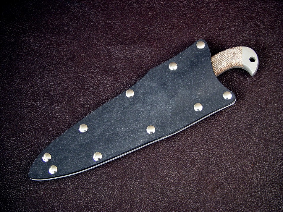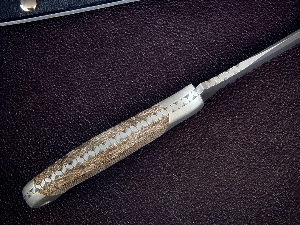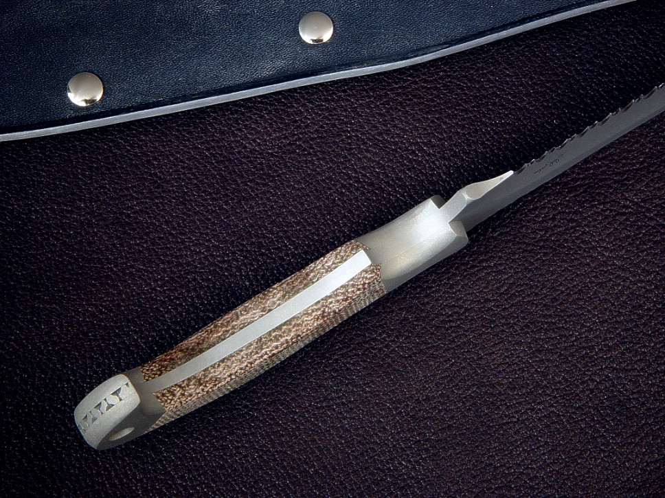 bolsters are dovetailed and hold an unusual pair of Micarta handle