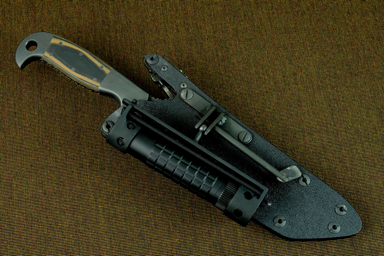 I start with my effective and well-recognized professional combat and counterterrorism knife designs, and add as many features and accessories possible so that these ensembles will interface with all the gear, in every situation, as dictated by my combat and counterterrorism clients. They have given me the guidance to create this gear, and it is the best of its field in the entire world. No other knife maker or manufacturer that has even come close, and none that have even tried.