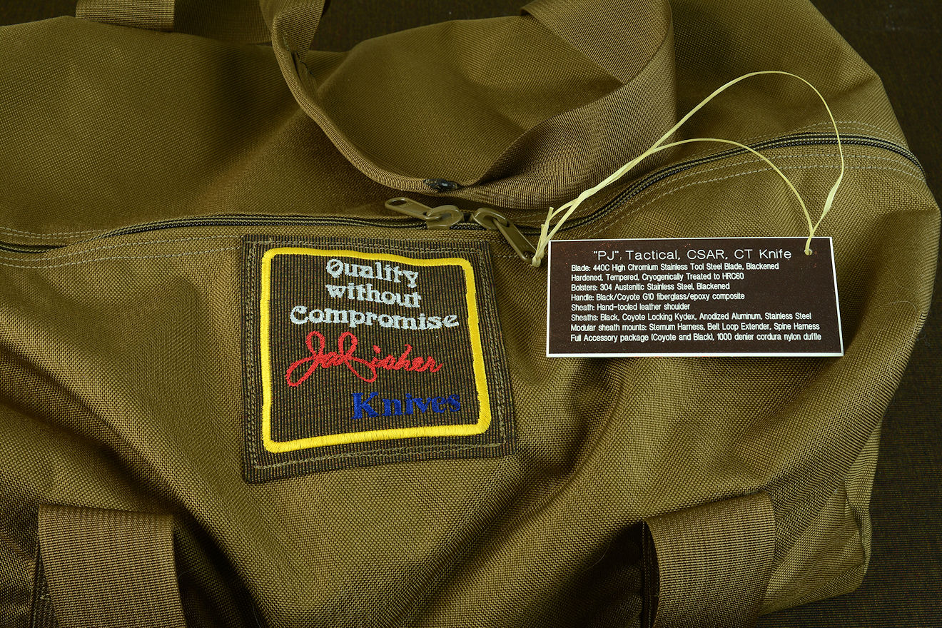 Accessories: This is an example of my commitment to the entire knife experience, from design to working service, with some of the finest professional knife users in the world. Since the bolt pattern of the sheath matches my 2.5" bolt pattern for my accessories, most of my accessories can be used on this sheath, including any new ones I develop. At the request of the counterterrorism professionals, this knife comes with the most complete bunker of attachment, wear, and useful accessories made in the world today! I even hand-make the heavy 1000 denier duffle bags to hold the entire kit. The kit includes my modular sheath wear system components, in both coyote brown and black: