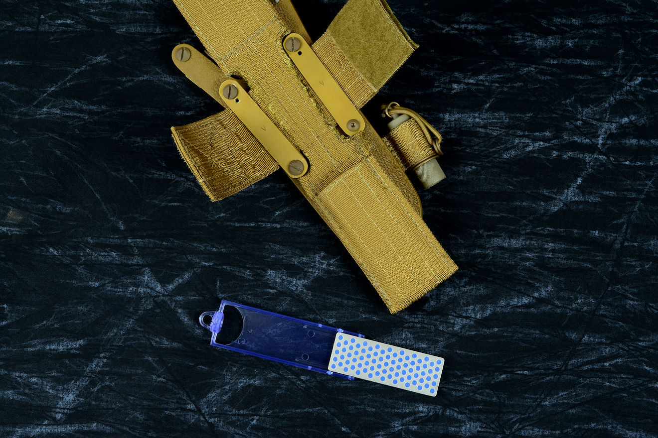 coyote brown acetyl buckles. DMT folding diamond sharpener for