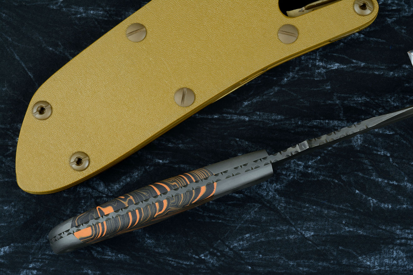 - Blade: ATS-34 High Molybdenum Martensitic Stainless Tool Steel, Hardened and Tempered, T4 Specialty Cryogenically treated to Rockwell C60, proprietary surface oxide treatment "Ghost Slate."