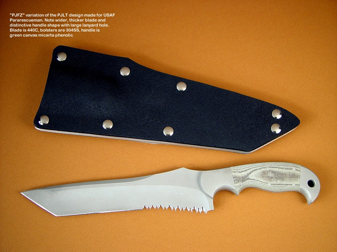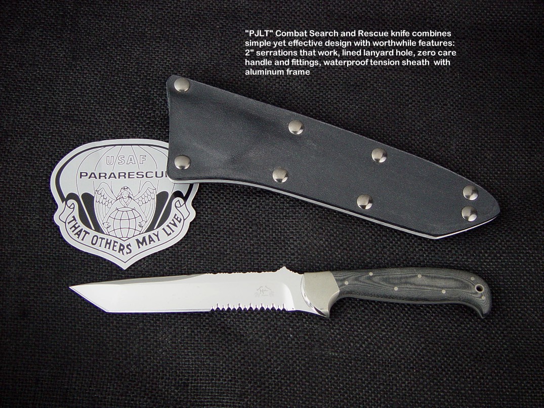 On this page, you will read topics about my most popular tactical combat search and rescue knife, the PJLT (Pararescue