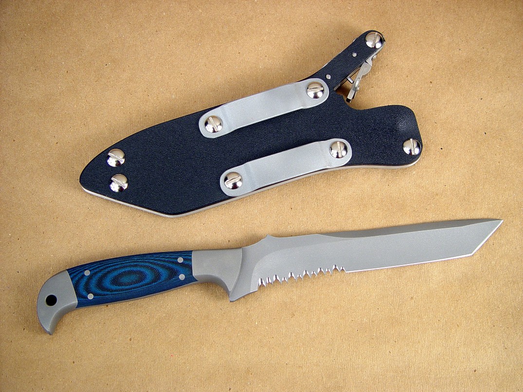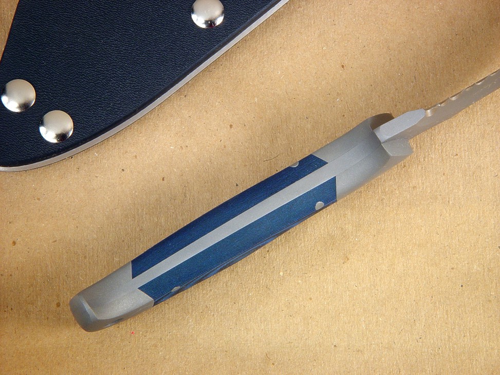 - Handle: Blue/Black G10 fiberglass reinforced epoxy laminate