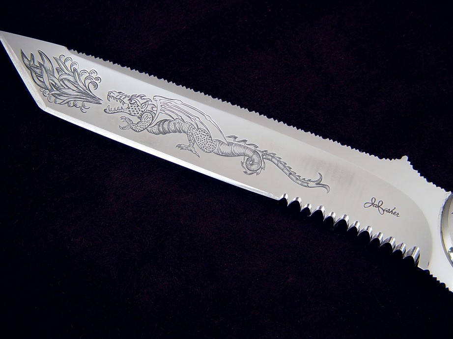 440C high chromium martensitic stainless tool steel, hand-engraved