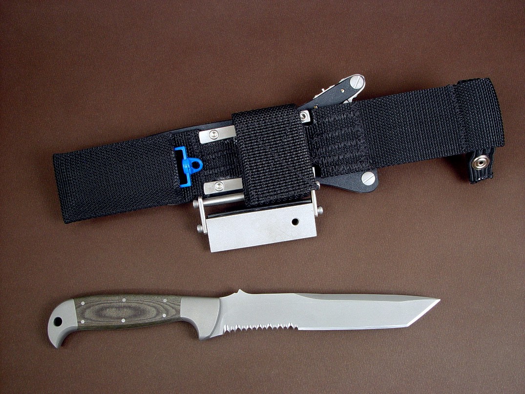 PJLT with a green linen micarta handle and locking sheath. A beautiful, useful, and