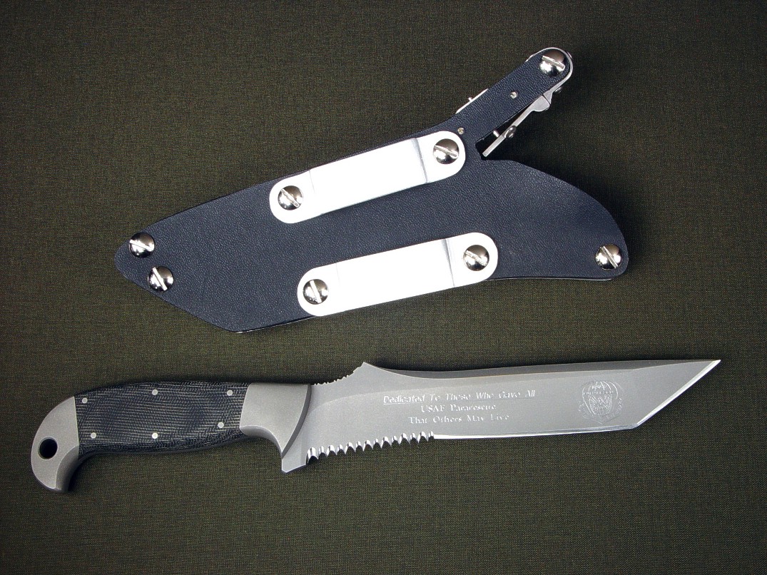 - Blade: 440C High Chromium Martensitic Stainless Tool Steel, Hardened and Tempered to Rockwell C58, Bead Blasted