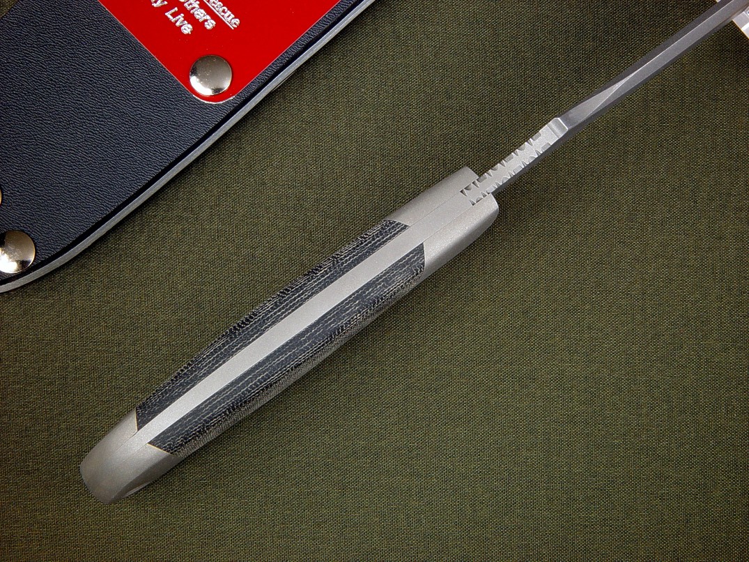 Micarta phenolic handle bedded and secured to the full tapered tang