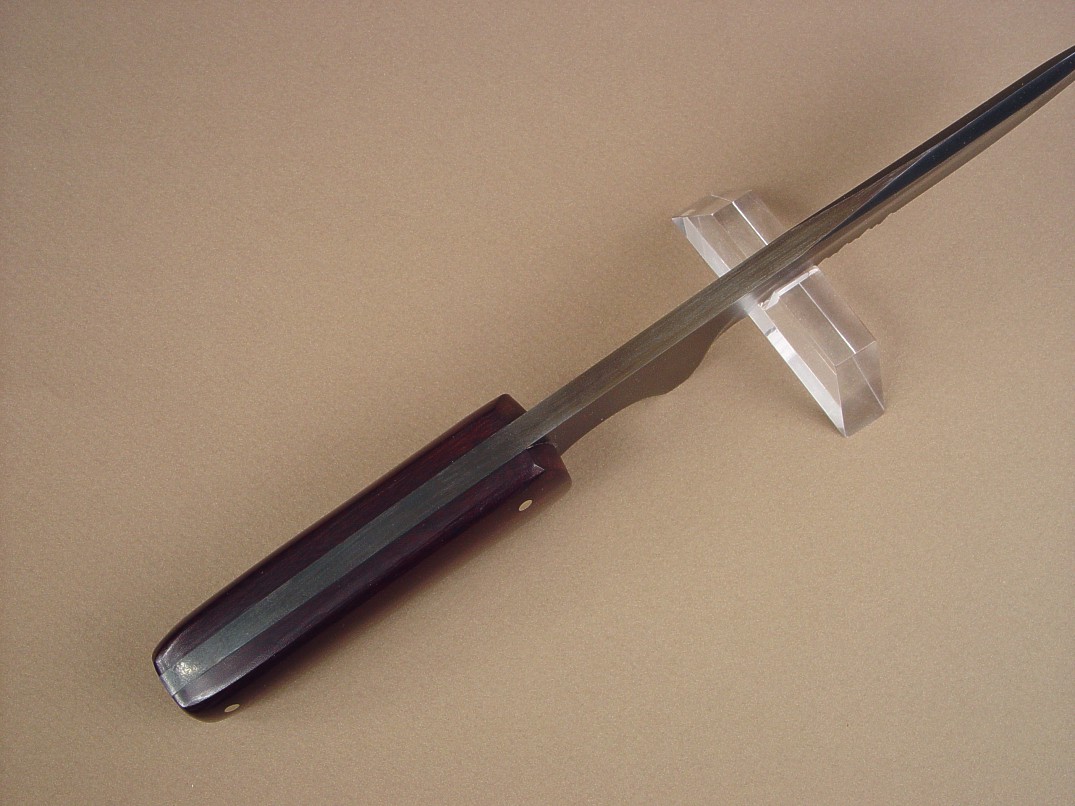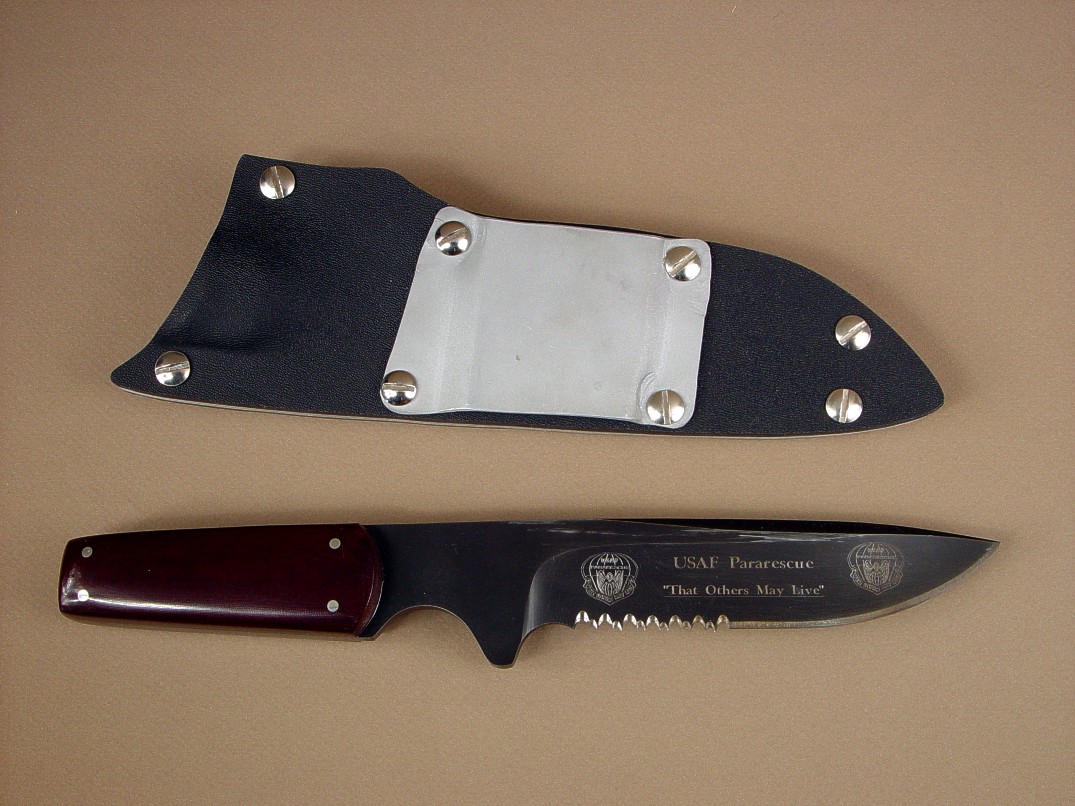 It is rare that I get to revisit some of my older and earlier works, and here is a pleasant exception. This is one of my early United States Air Force Pararescue Combat Search and Rescue (CSAR) knives, the "Paraeagle." The original design was created with input from a PJ that is now the commander of the 342nd Training Squadron. Together, back in the mid 1990's, we designed the Paraeagle pattern for a knife that has been one of my popular CSAR knives as well as civilian knife designs.