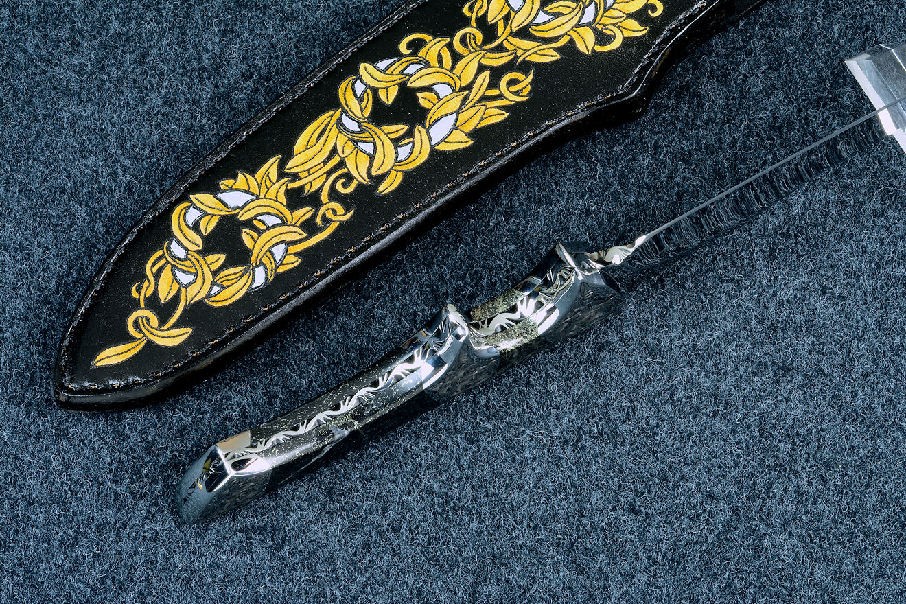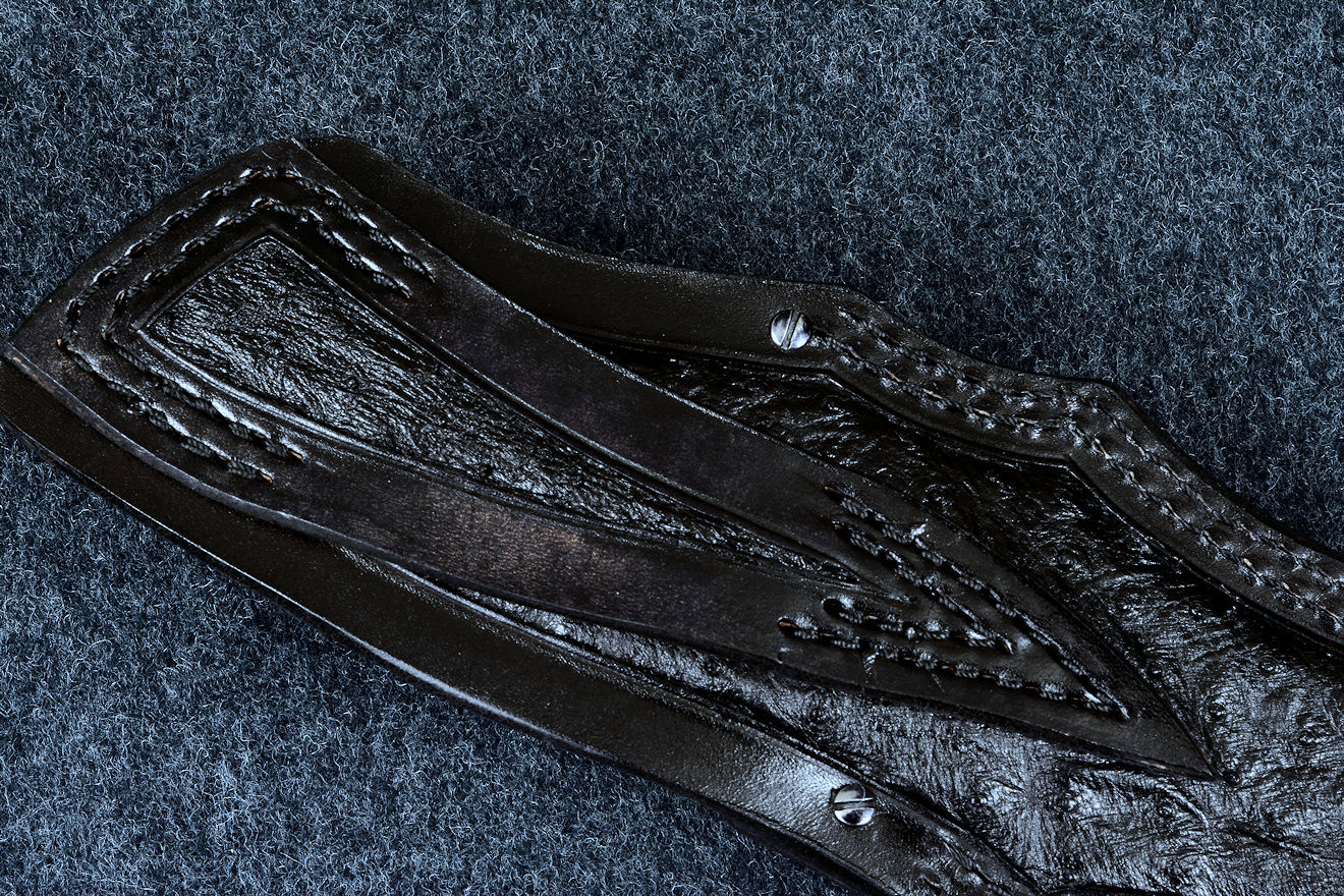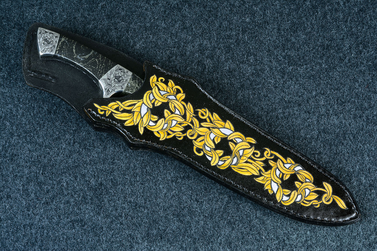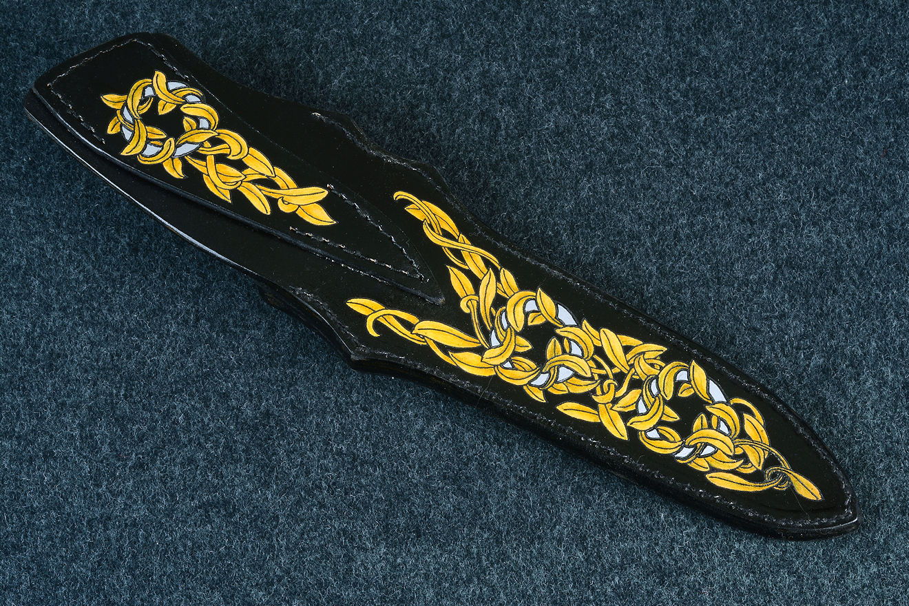 sheath. I then hand-dyed the leather in a gold-black motif to offer