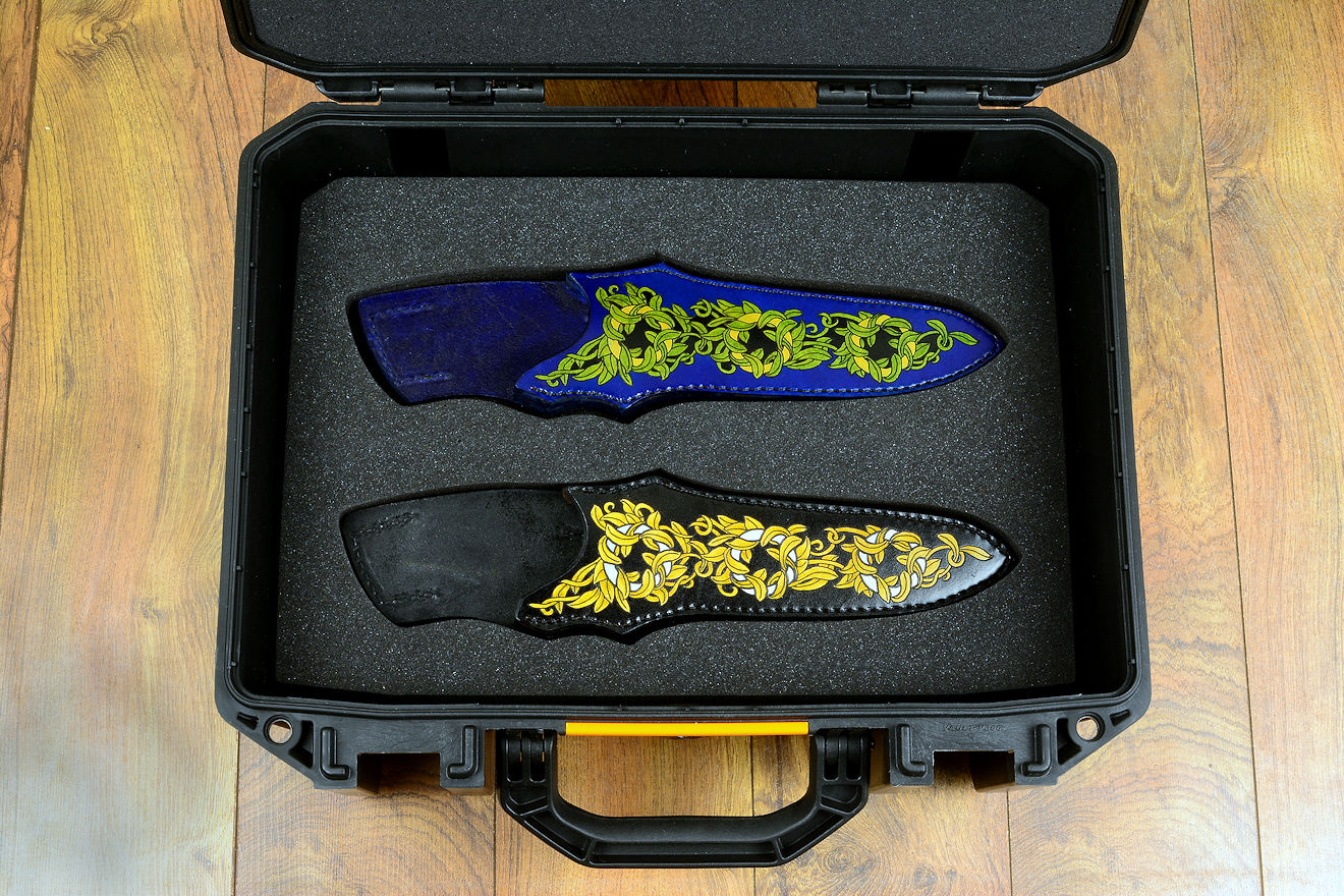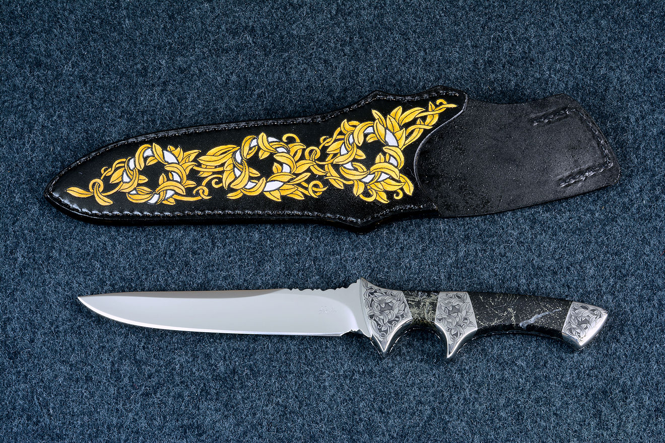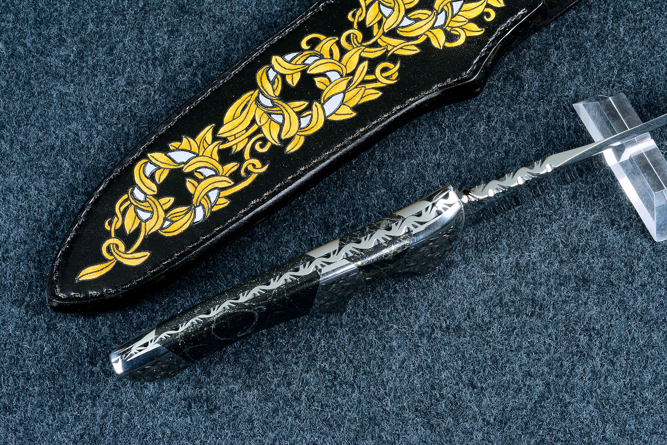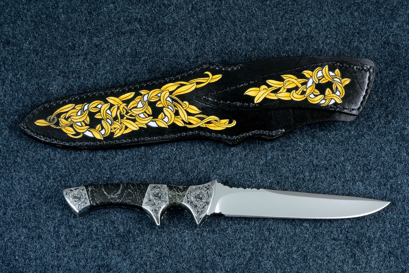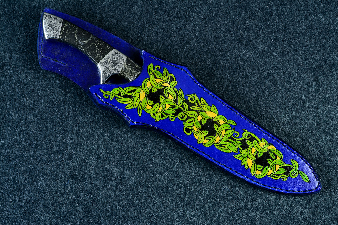 sheath. I then hand-dyed the leather in a gold-black motif to offer