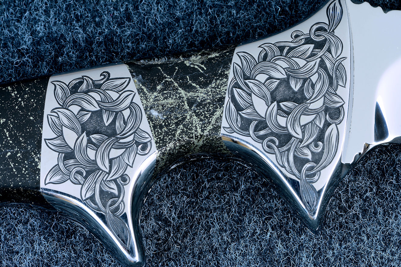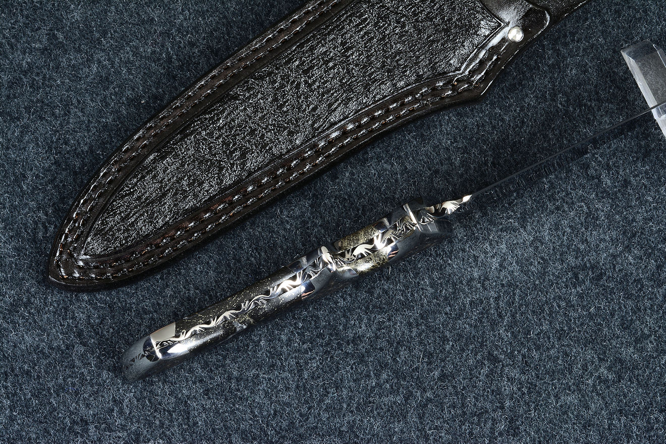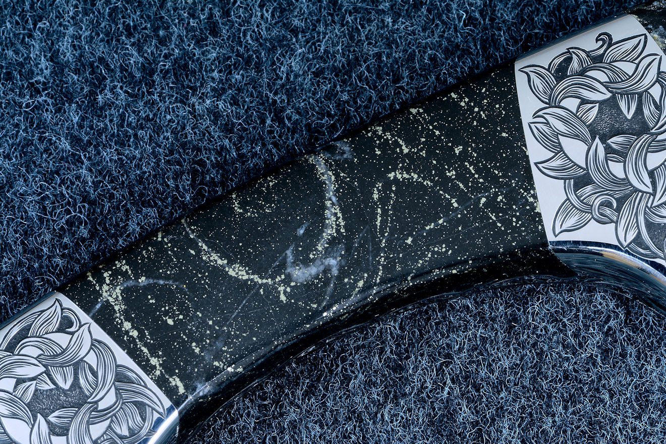 - Bolsters, Fittings: 304 Austenitic Stainless Steel, Mirror polished, Hand-engraved