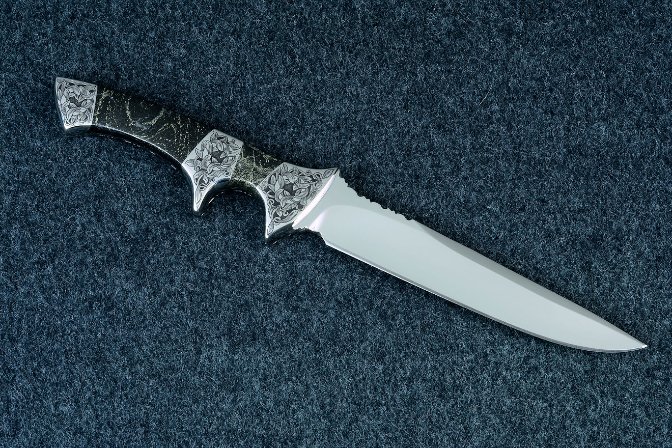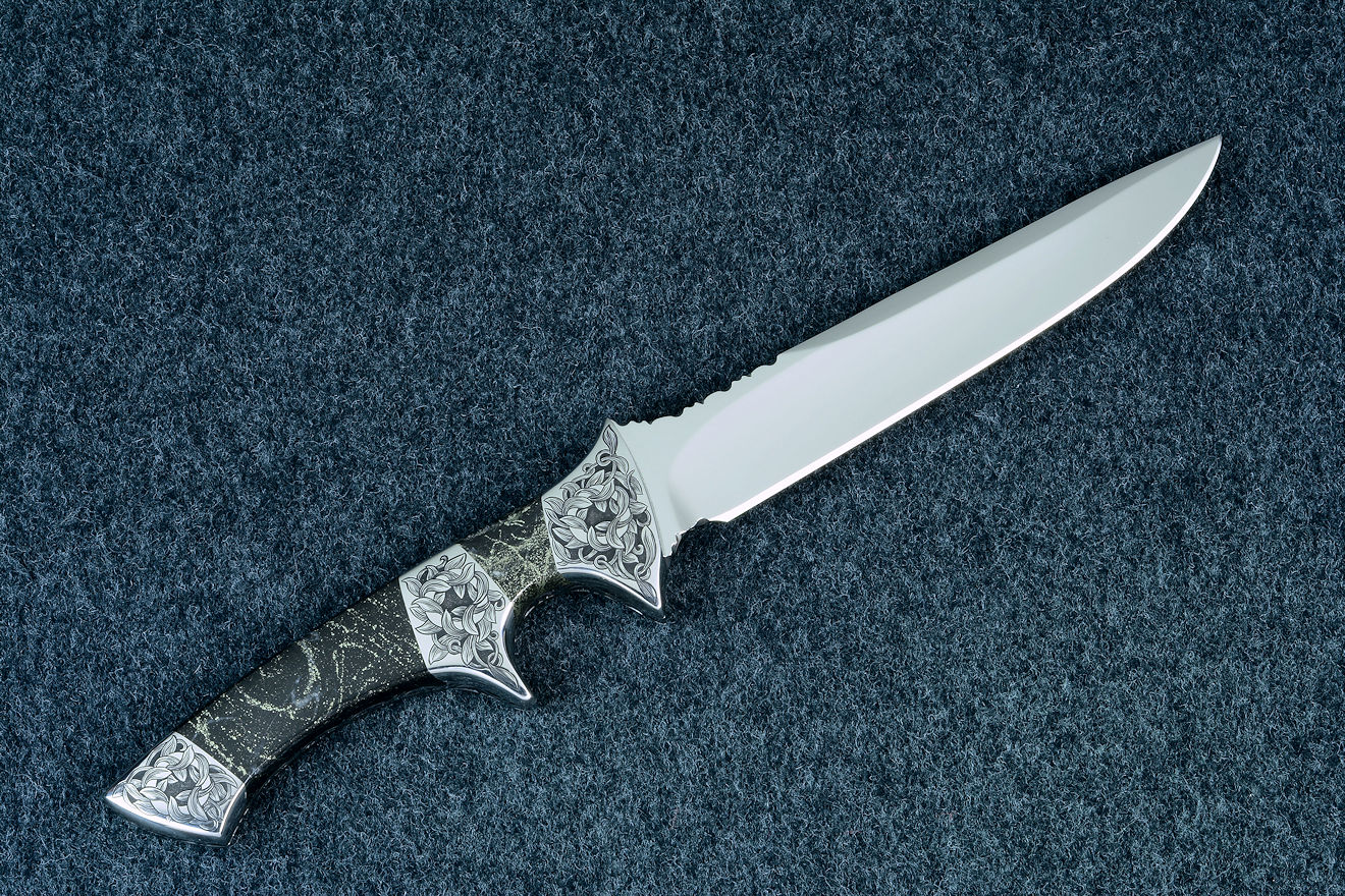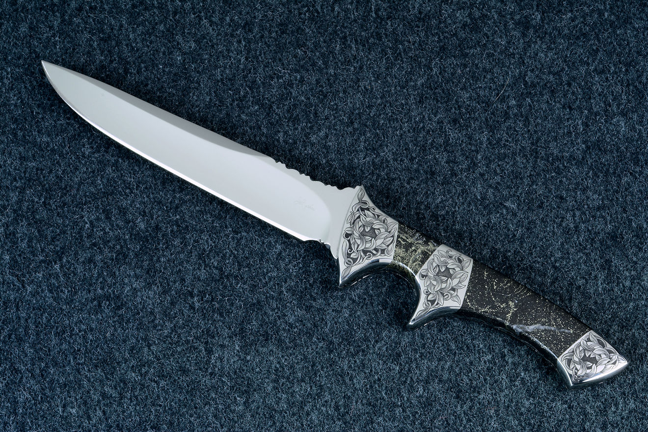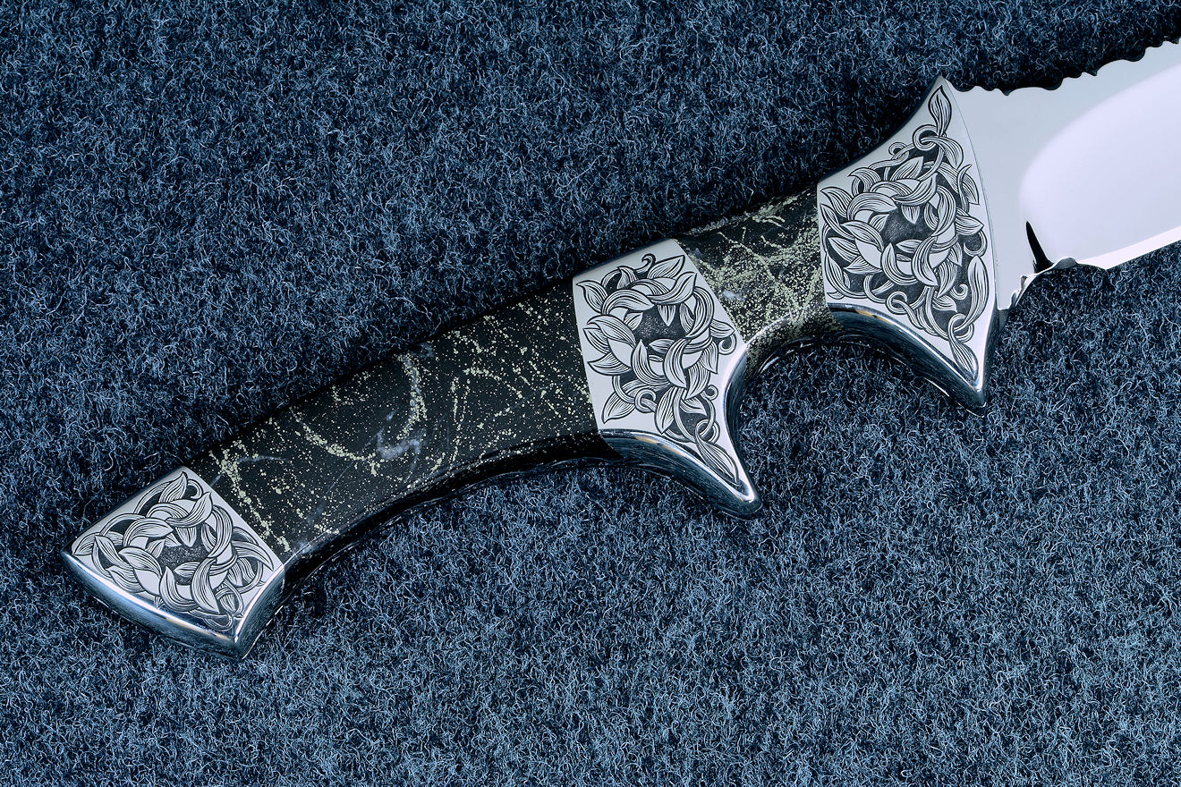 - Bolsters, Fittings: 304 Austenitic Stainless Steel, Mirror polished, Hand-engraved