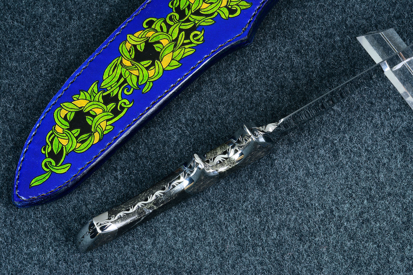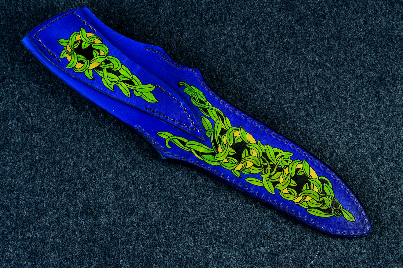 sheath. I then hand-dyed the leather in a brightly colored motif to