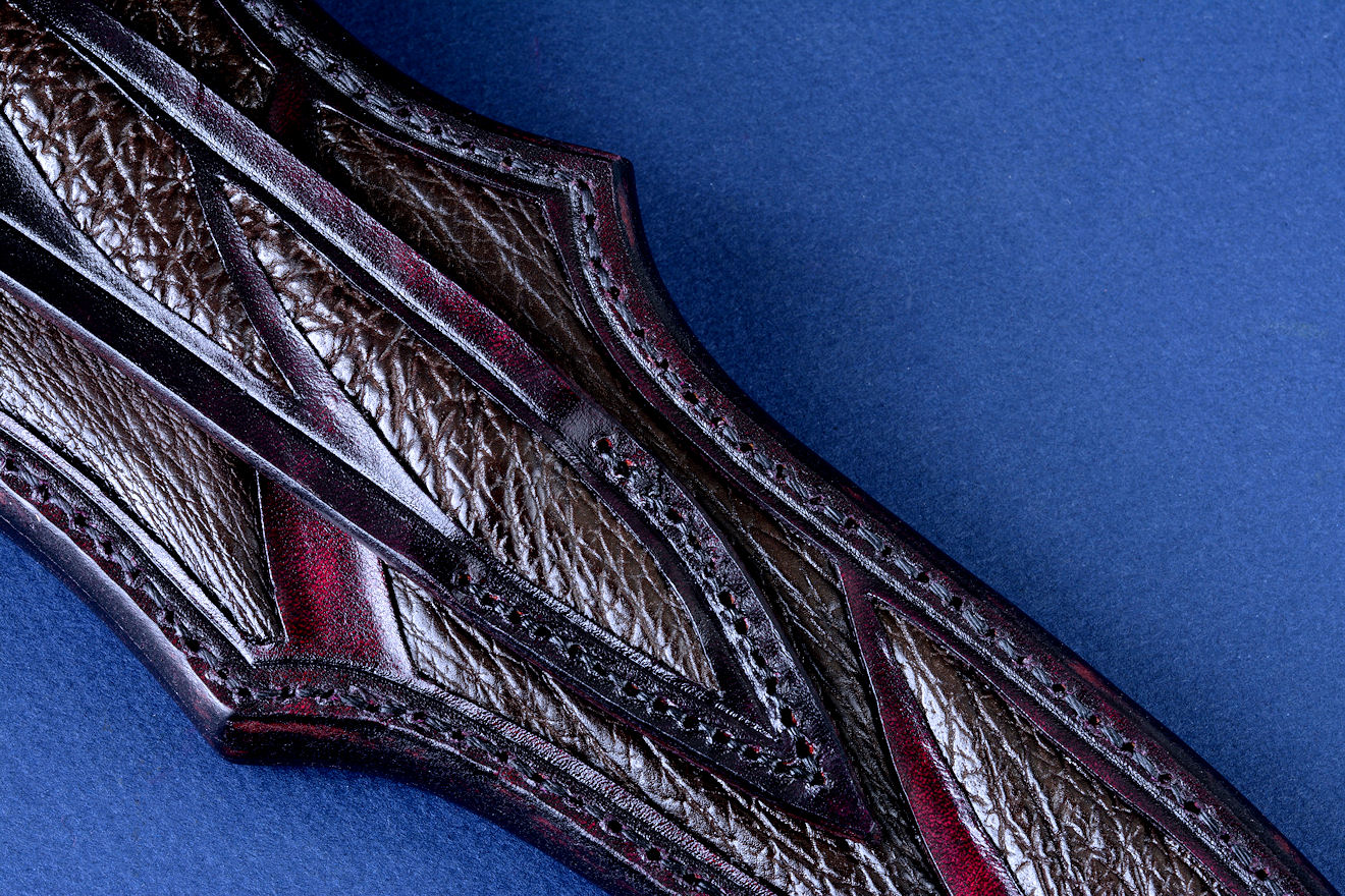 9-10 oz. leather shoulder for inlays of cocoa brown sharkskin. I