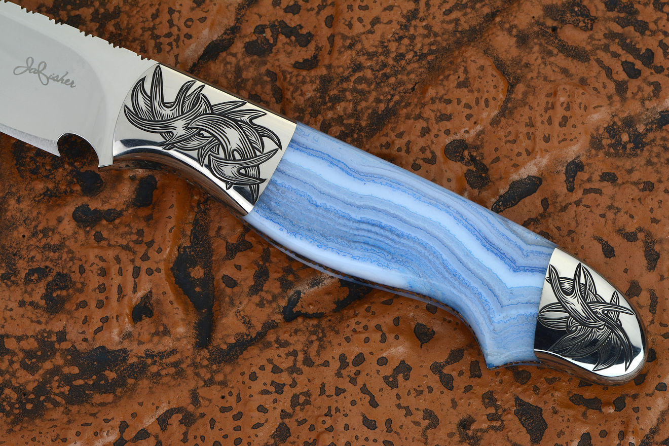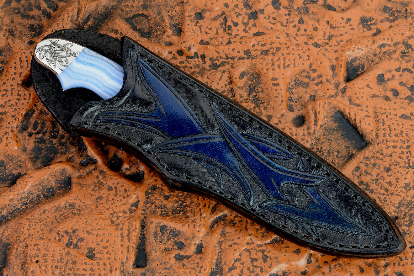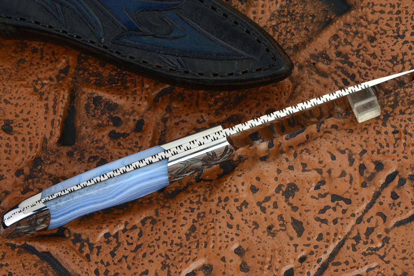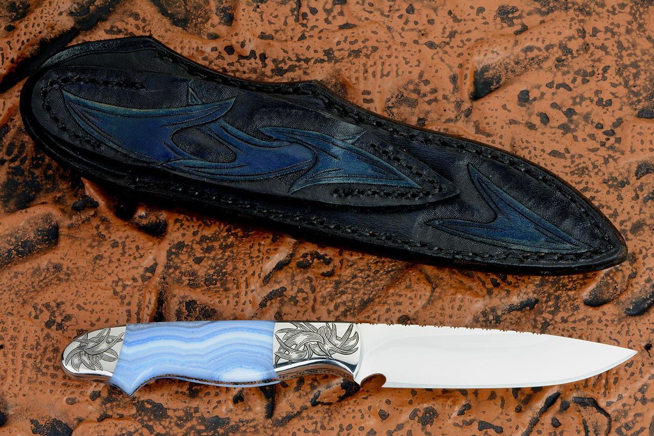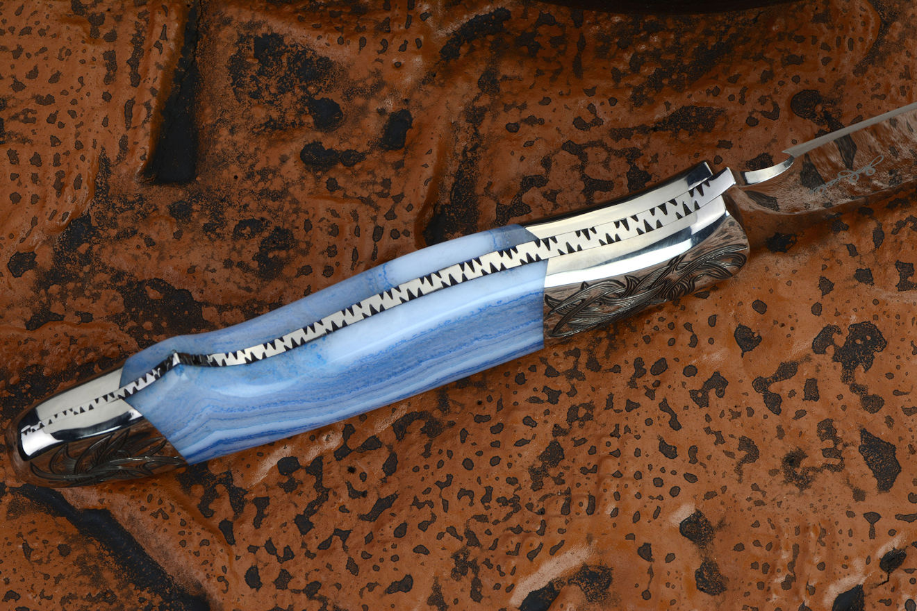 A flowing, airy handle of solid, hard, blue agate and a useable