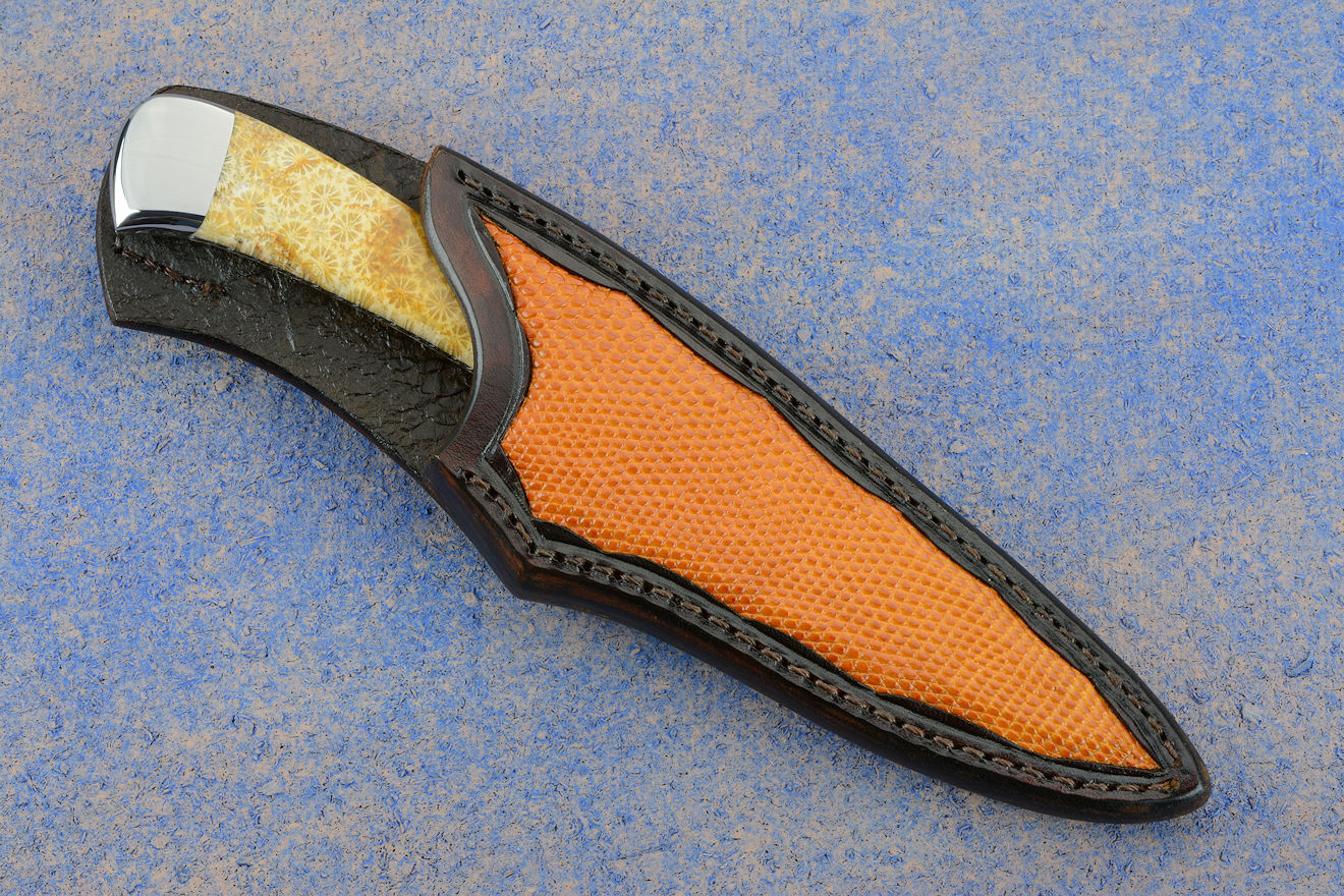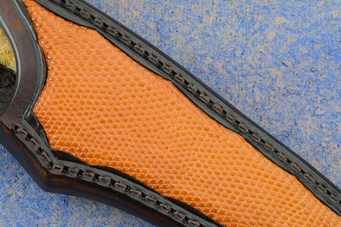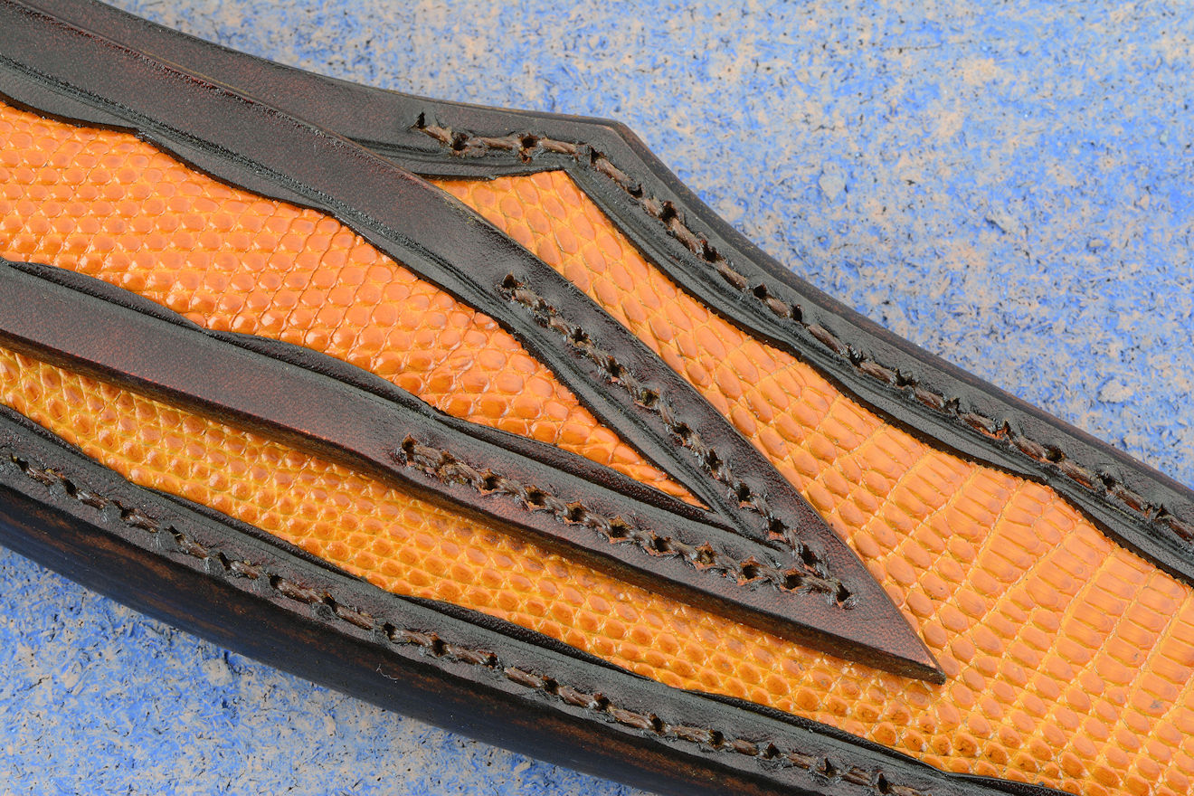 Sheath: Hand-carved Leather, inlaid with Lizard Skin