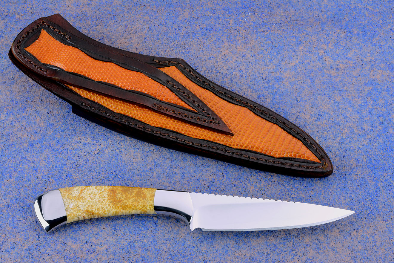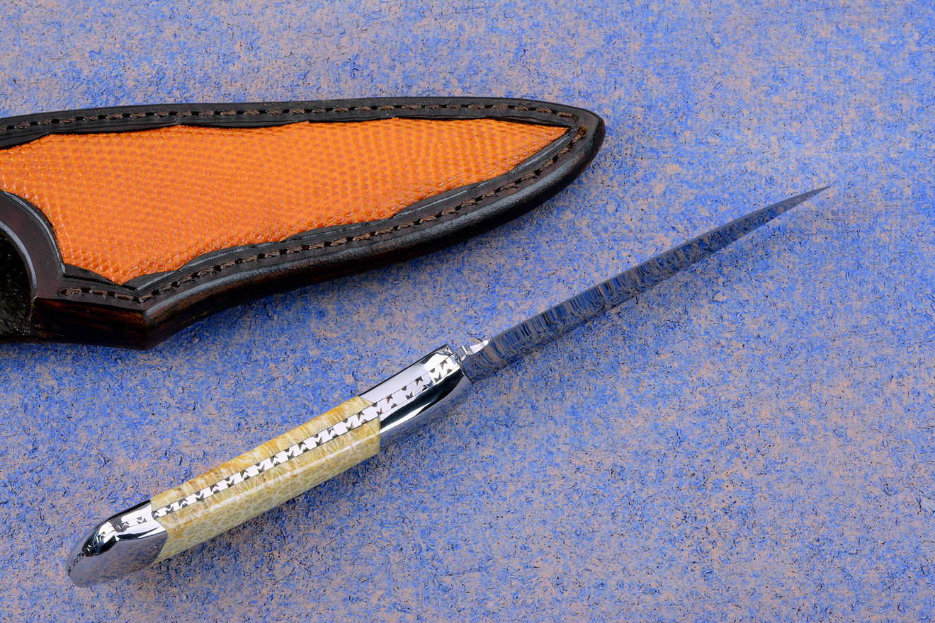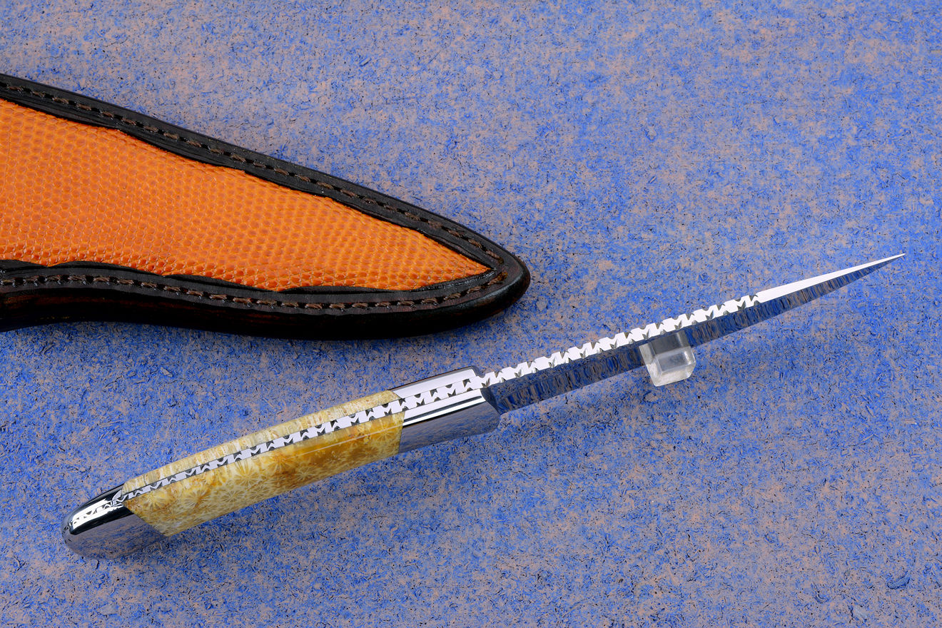 Sheath: Hand-carved Leather, inlaid with Lizard Skin