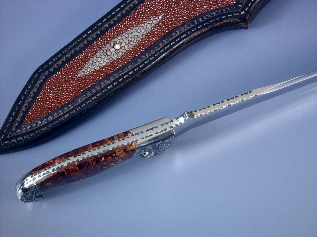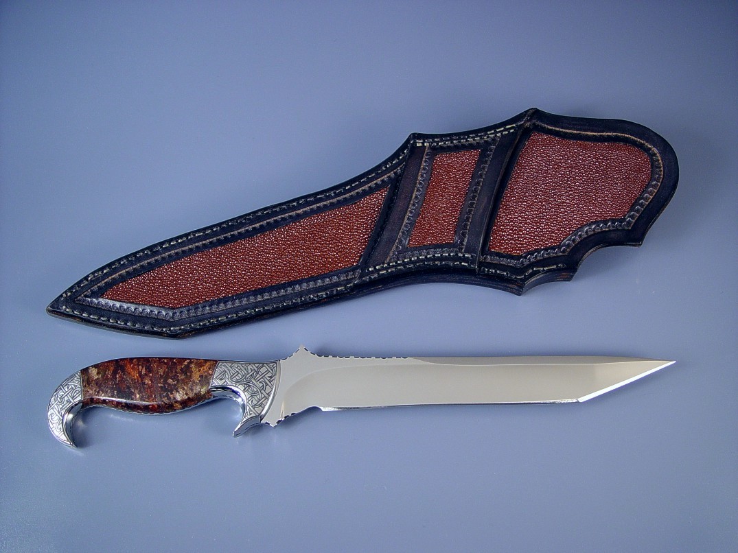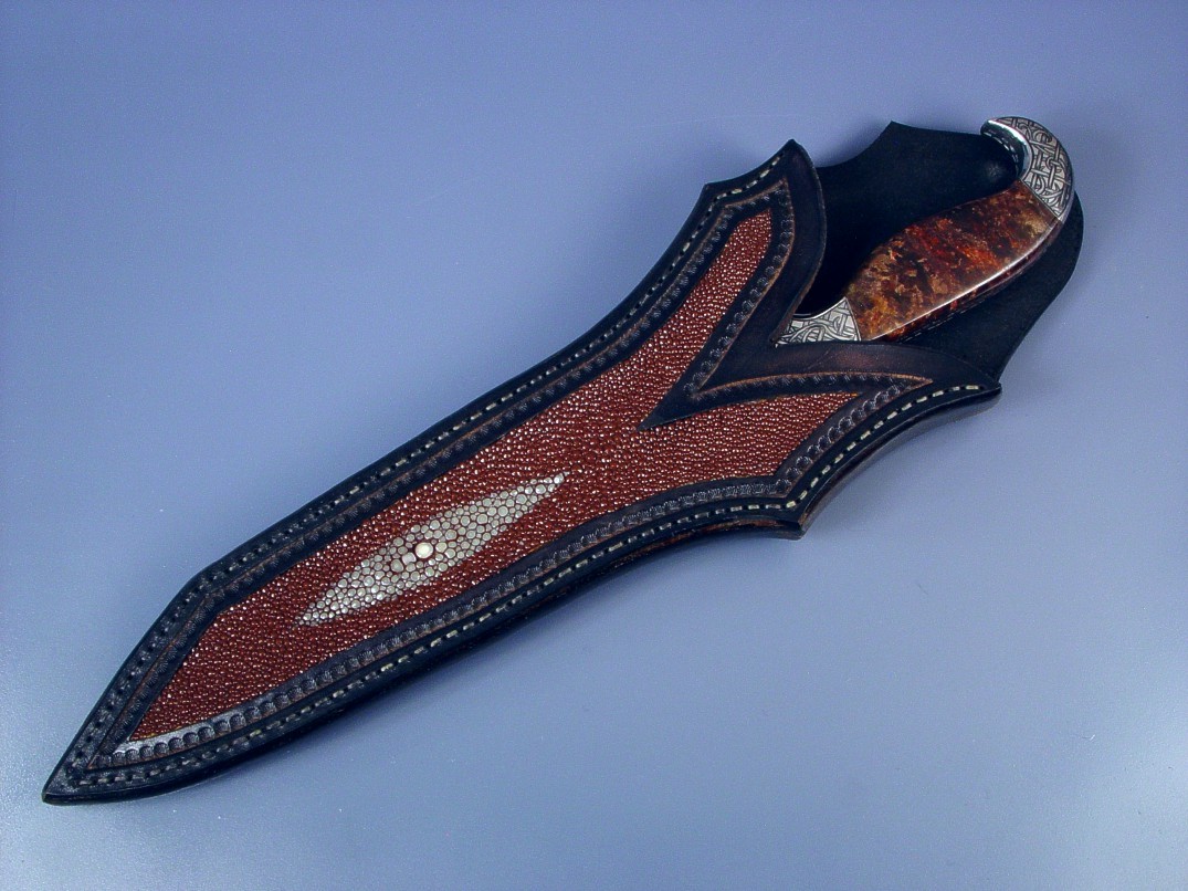 - Sheath: Brown Rayskin Inlaid in hand-carved and tooled Leather Shoulder