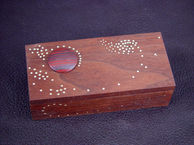 Case: American Black Walnut, Brass Pique inlay, Jasper and Hematite Gemstone