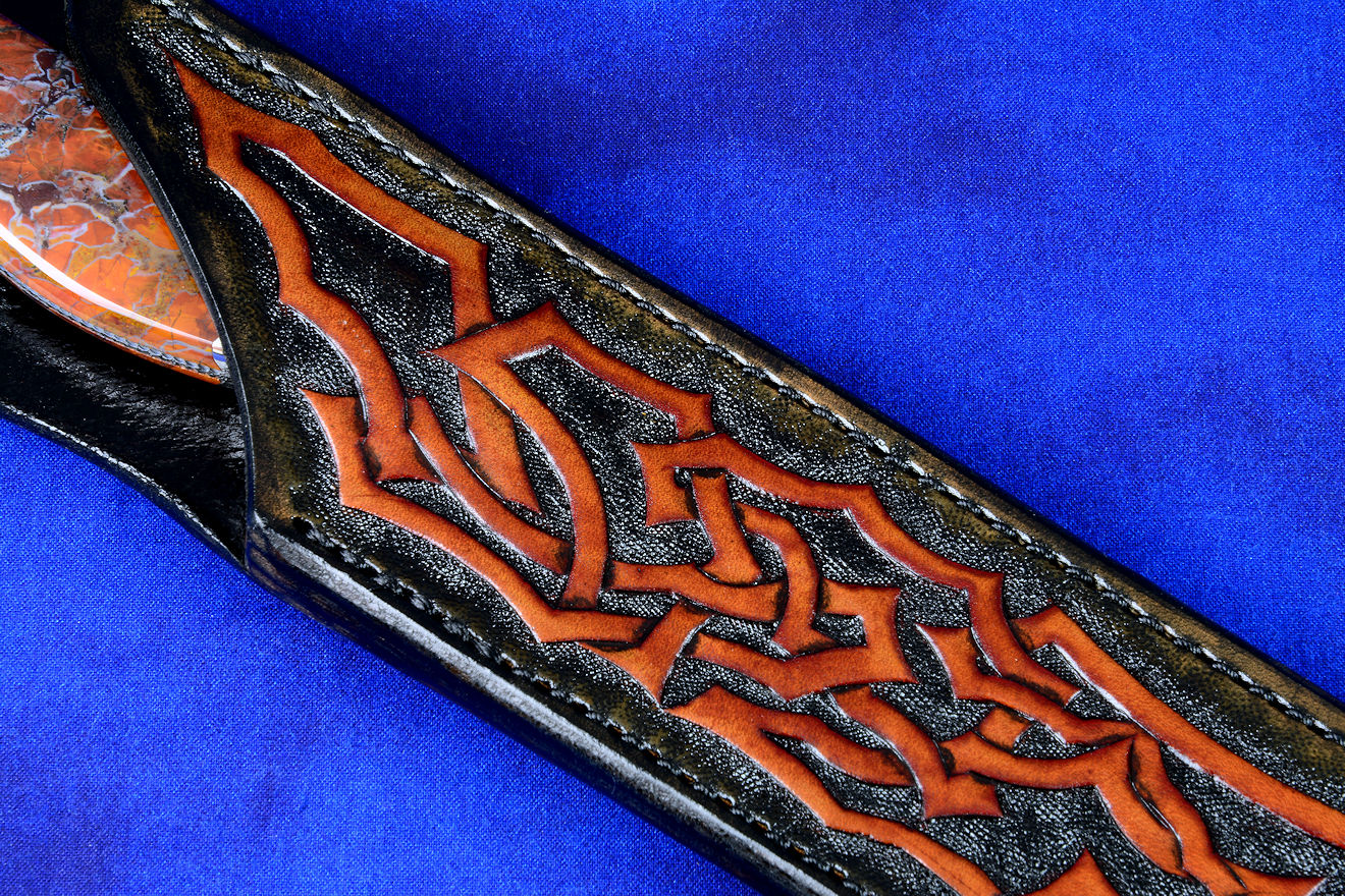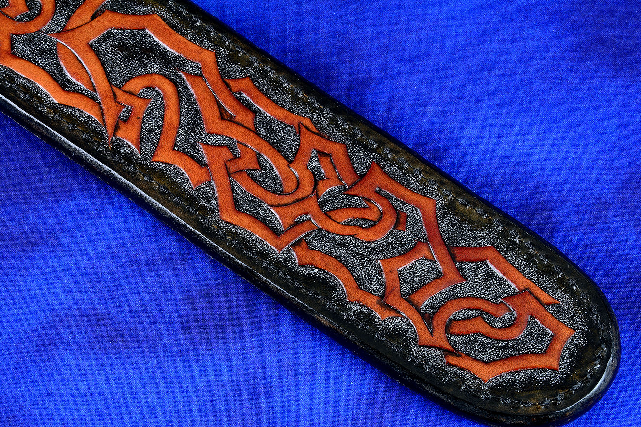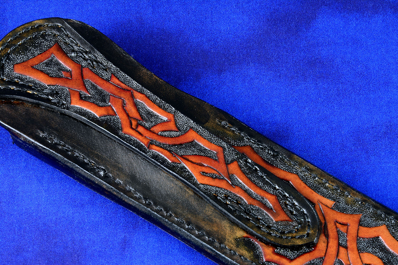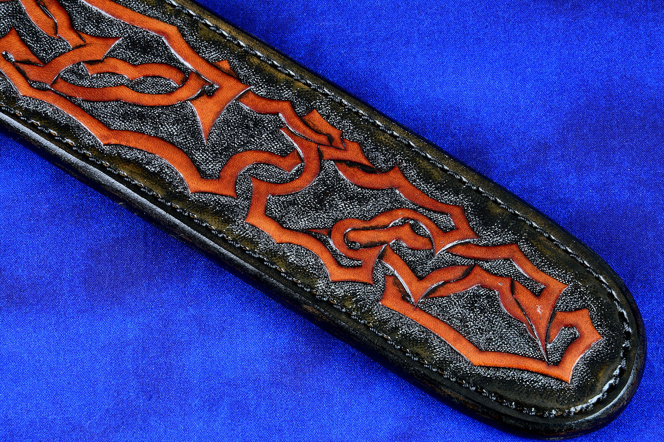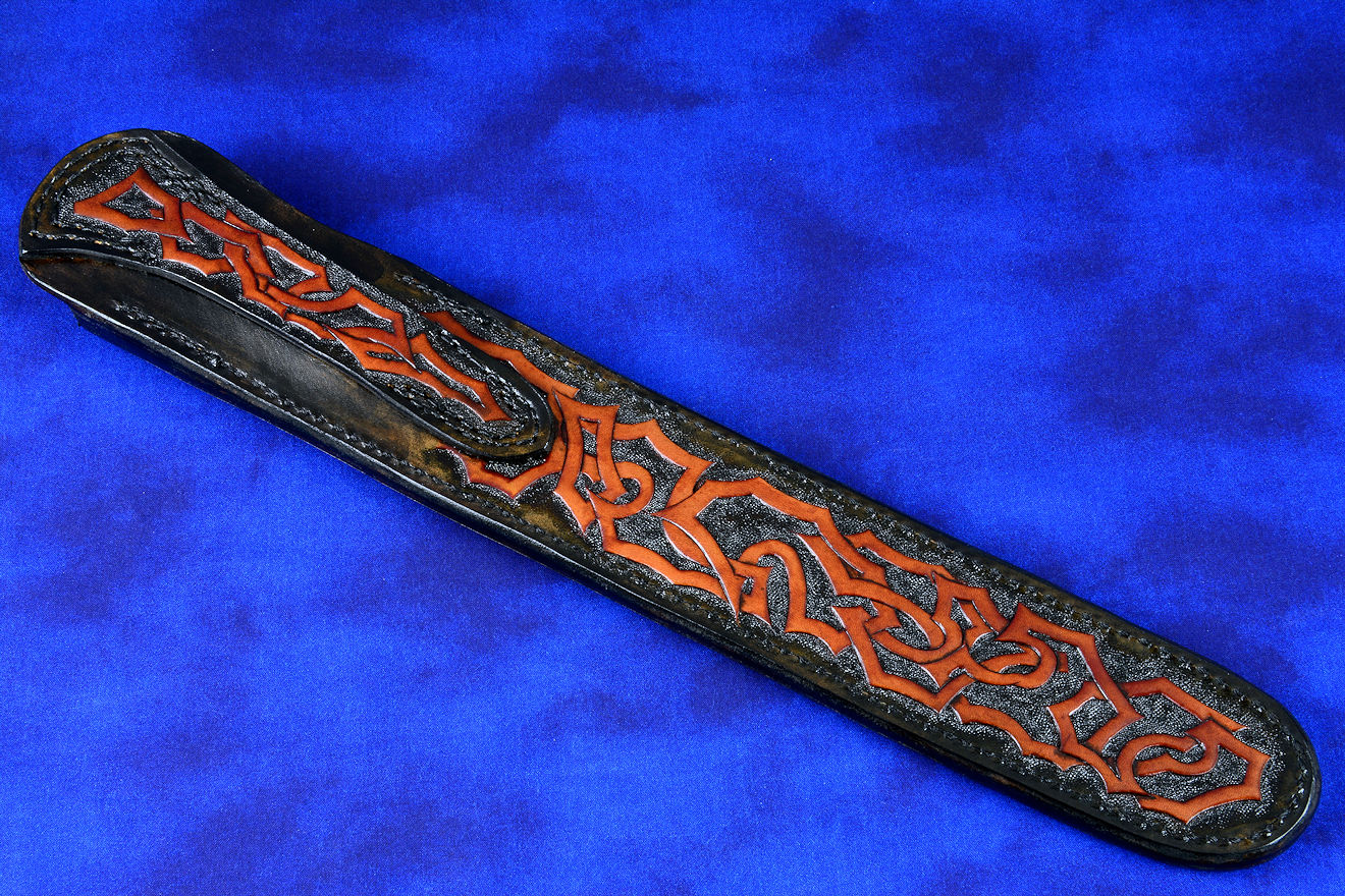 - Sheath: Hand-carved, hand-dyed Leather Shoulder