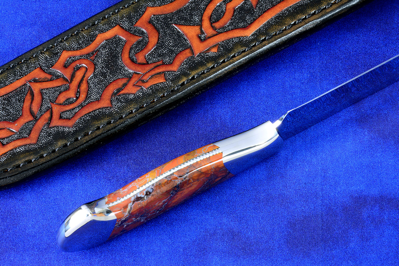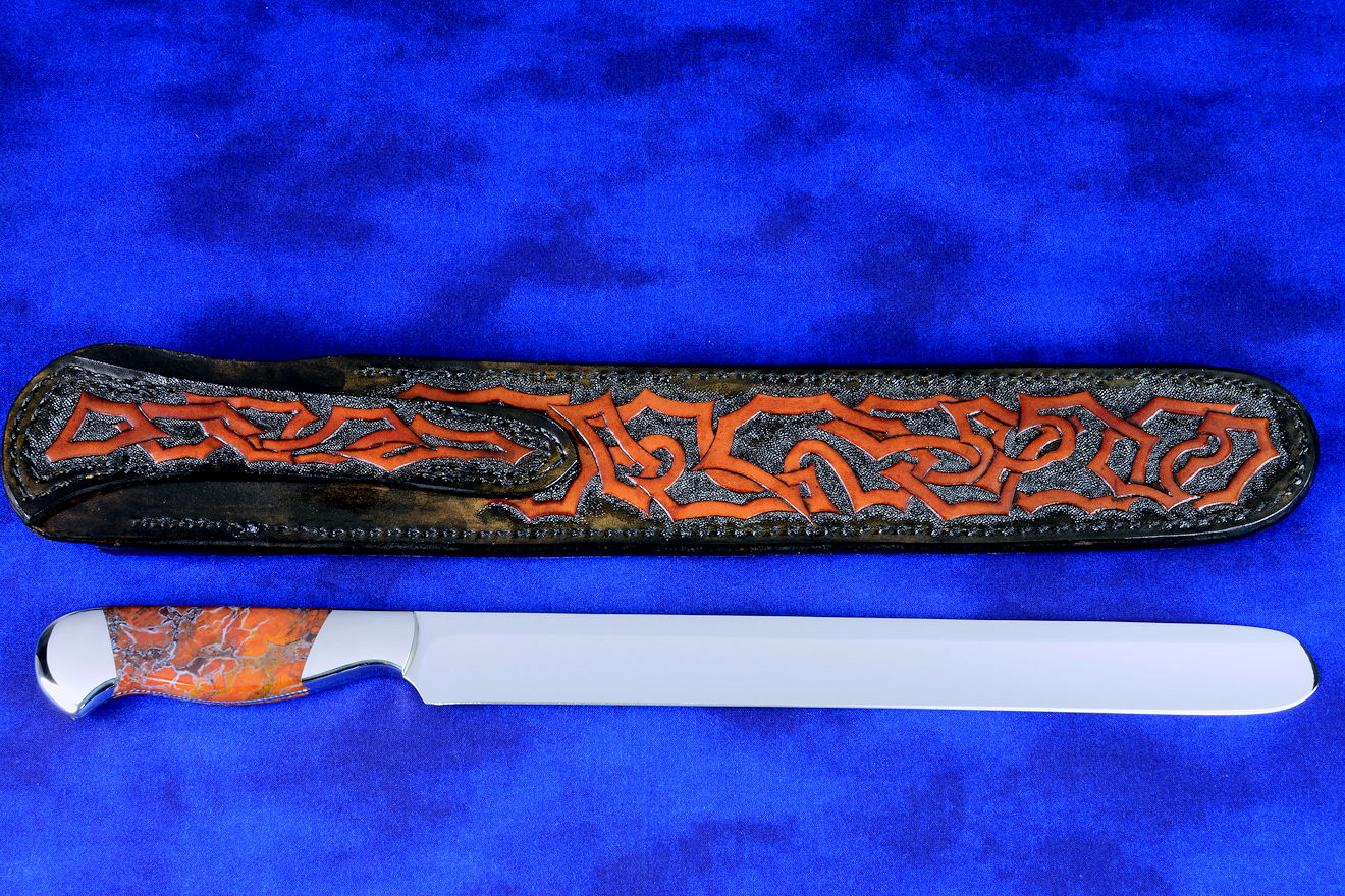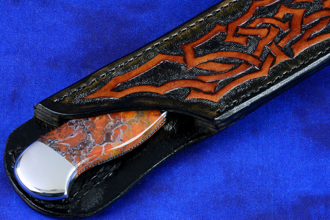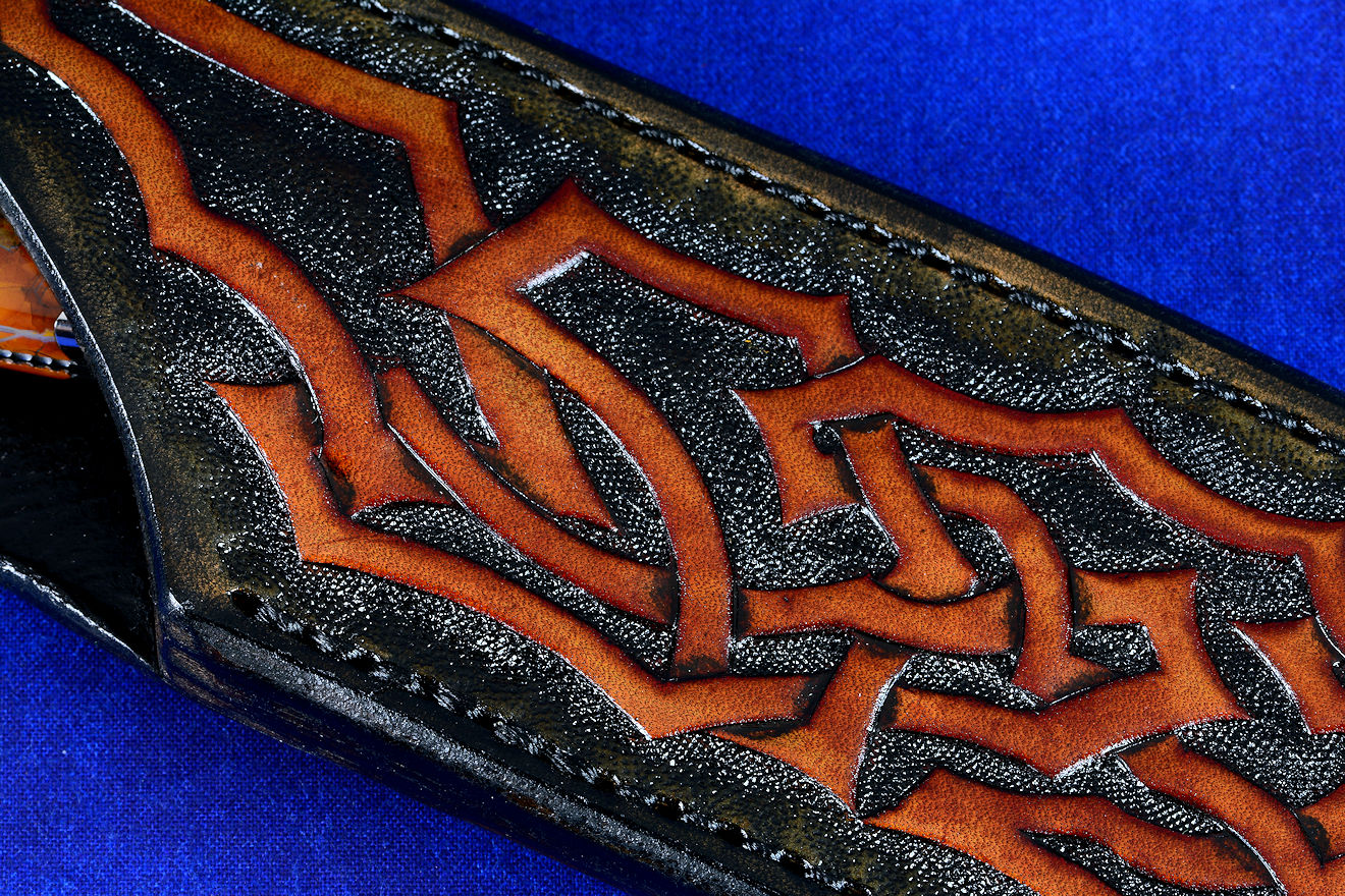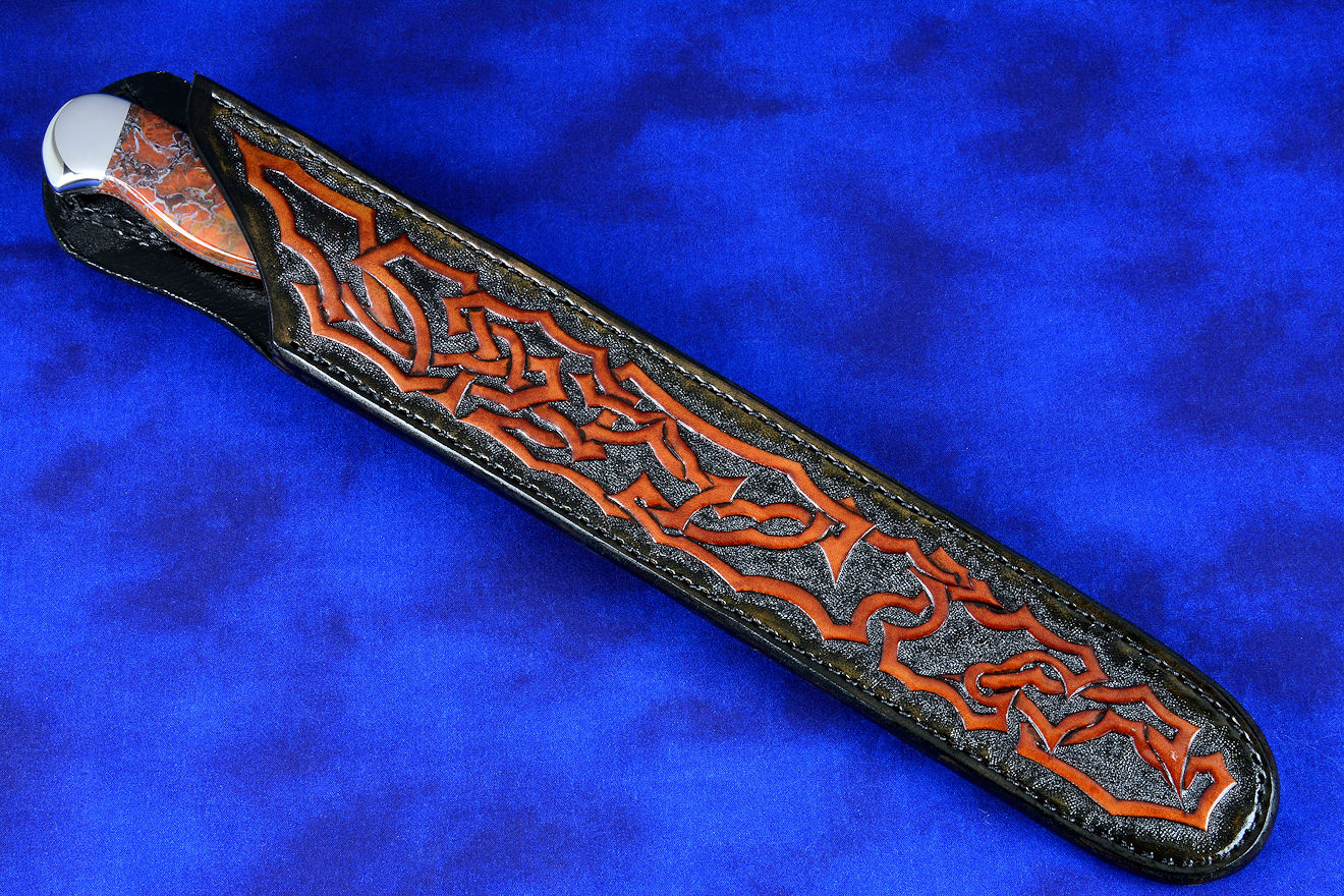 - Sheath: Hand-carved, hand-dyed Leather Shoulder
