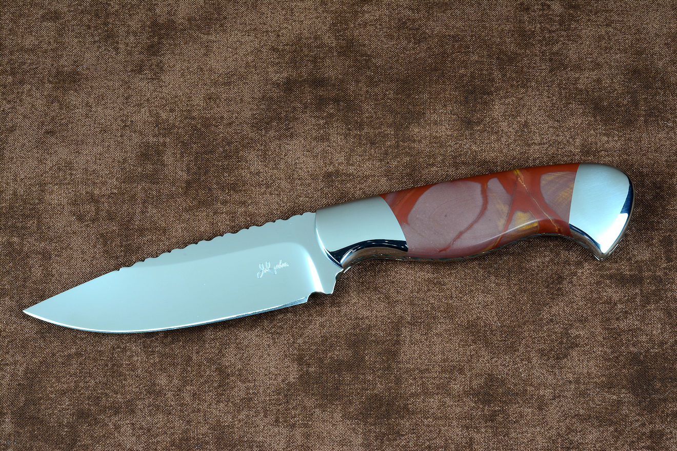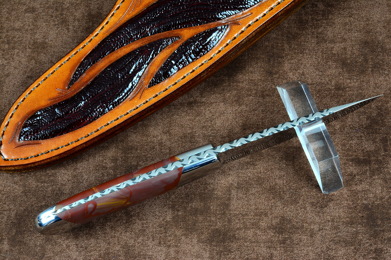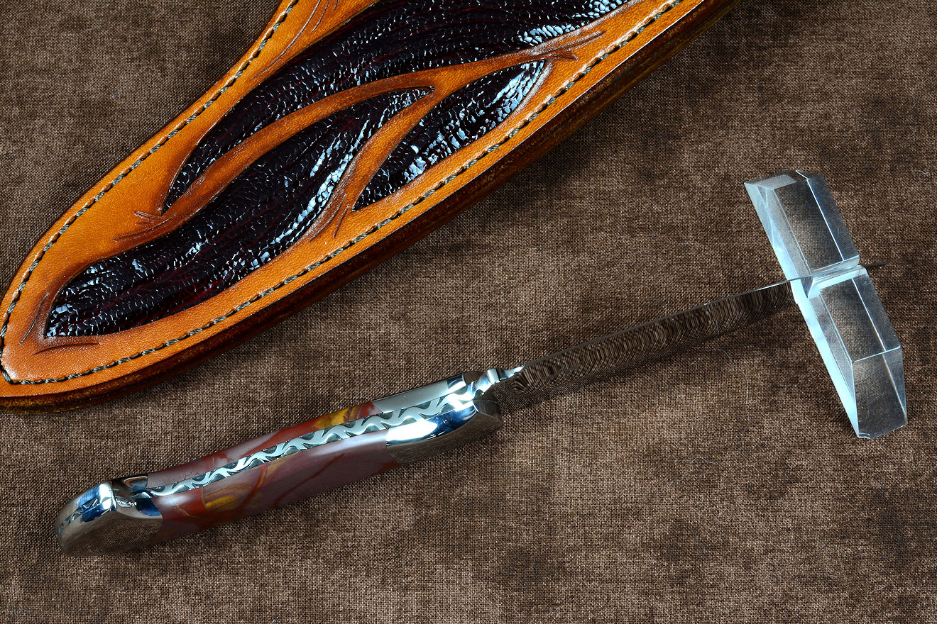 A handsome, thin, fine-edged knife with warm colors and working style.