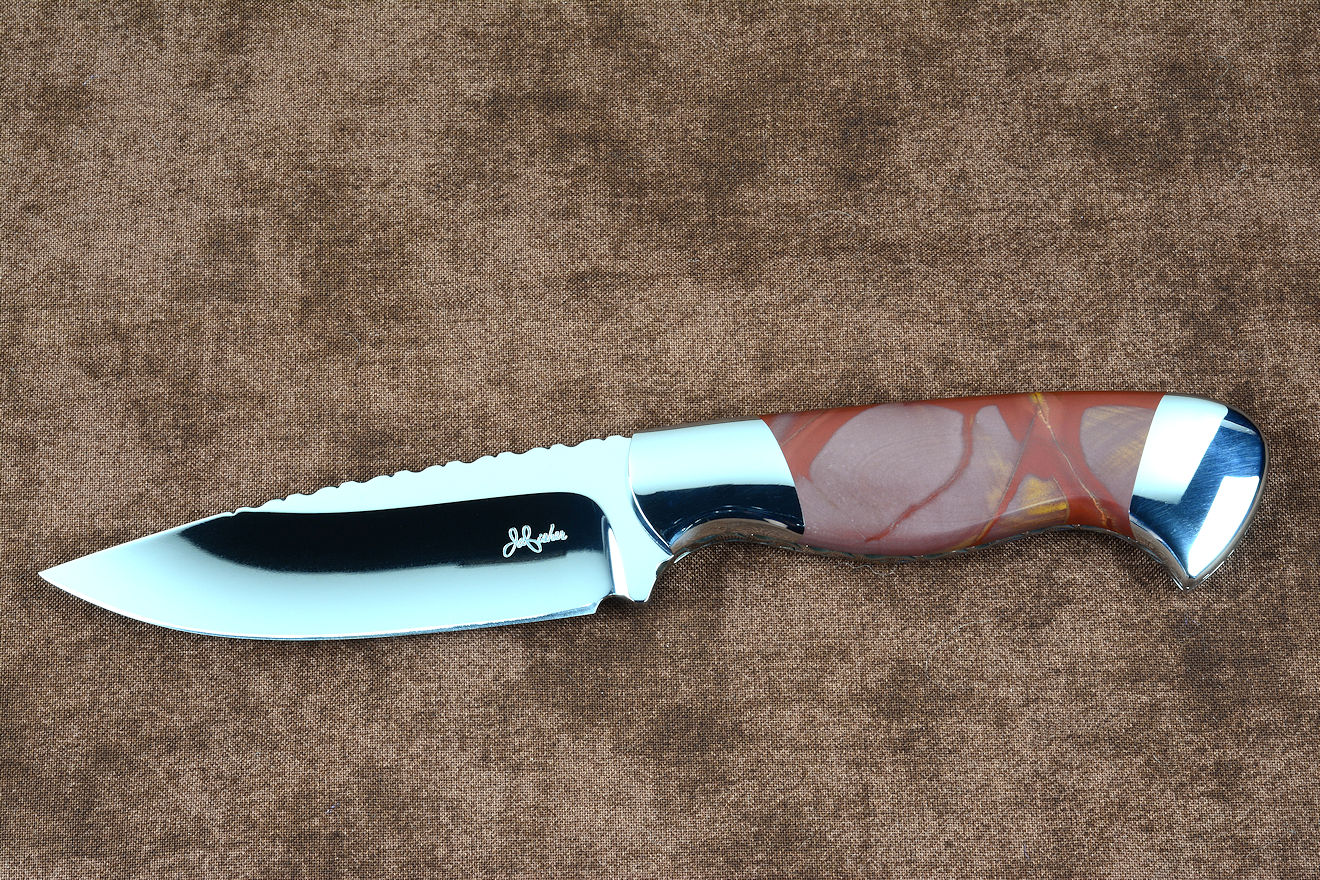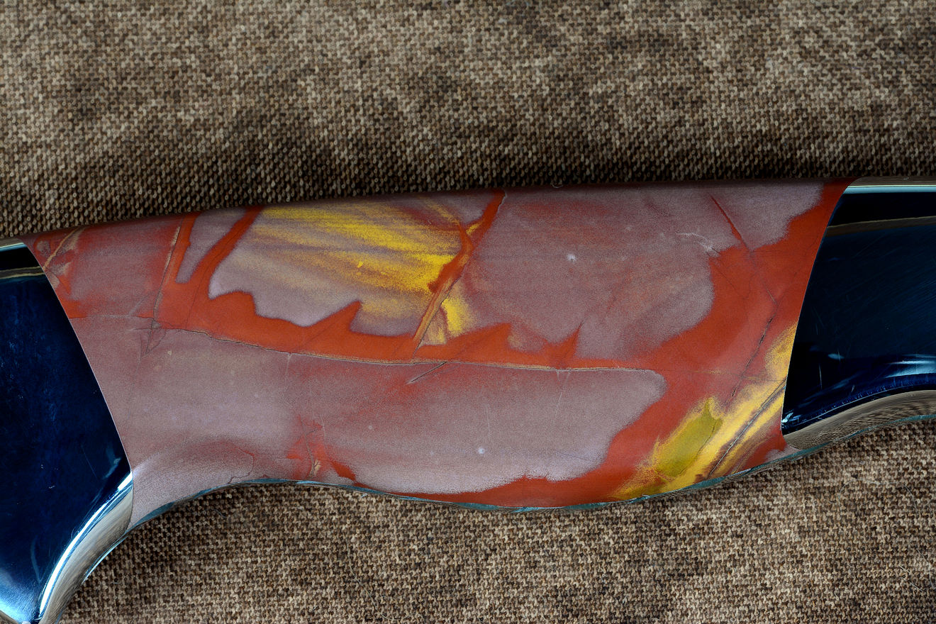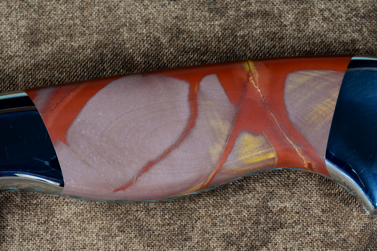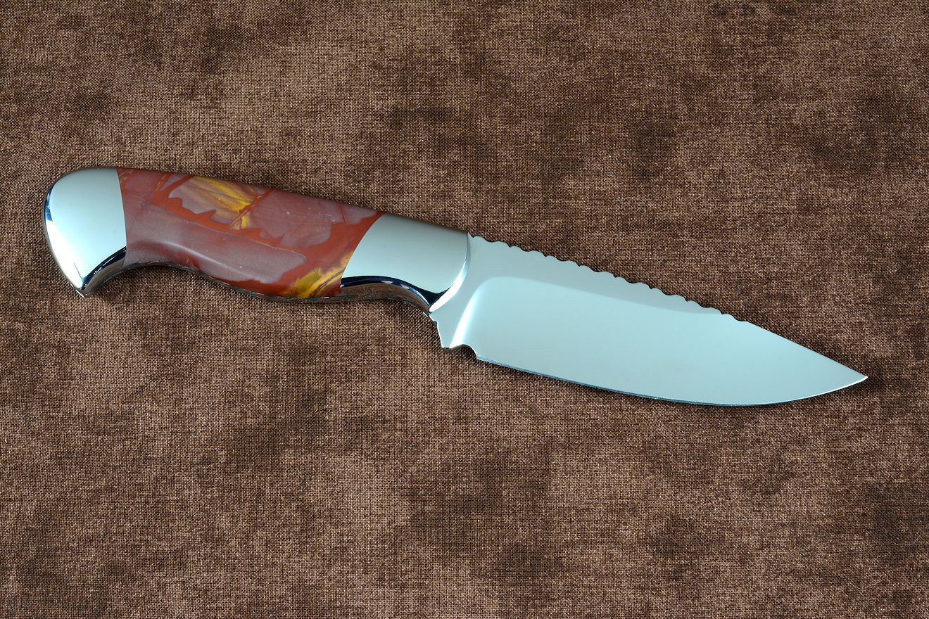 A handsome, thin, fine-edged knife with warm colors and working style.