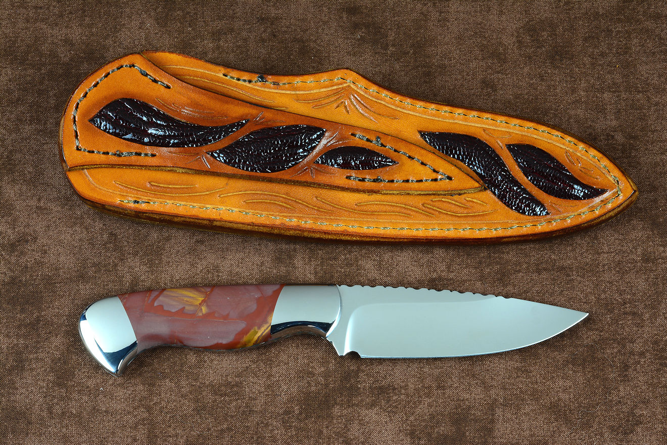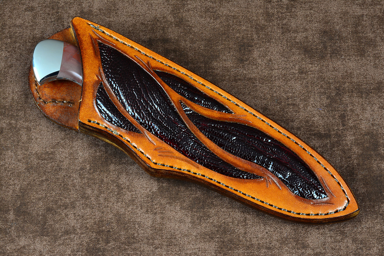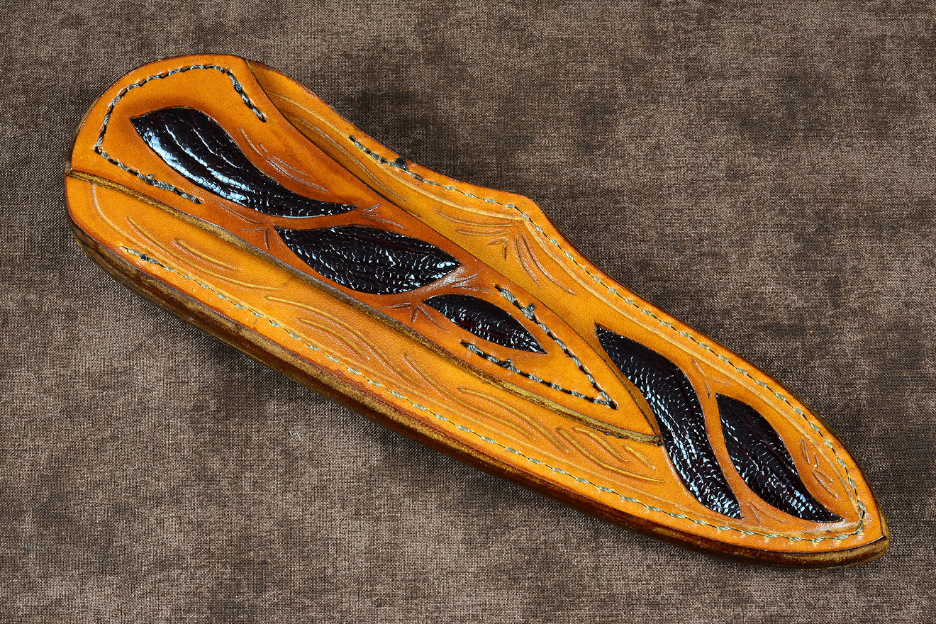 Sheath: Hand-carved, hand-dyed Leather Shoulder inlaid with