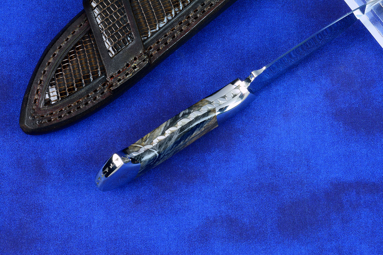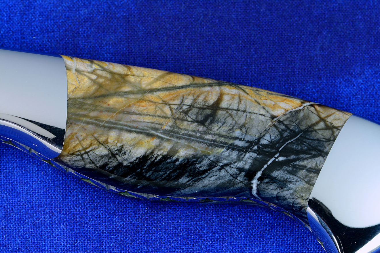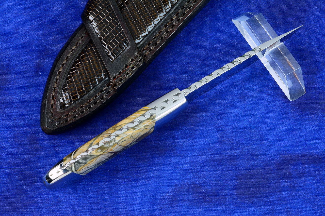 shoulder, hand-carved, and made full panel inlays of brown Teju