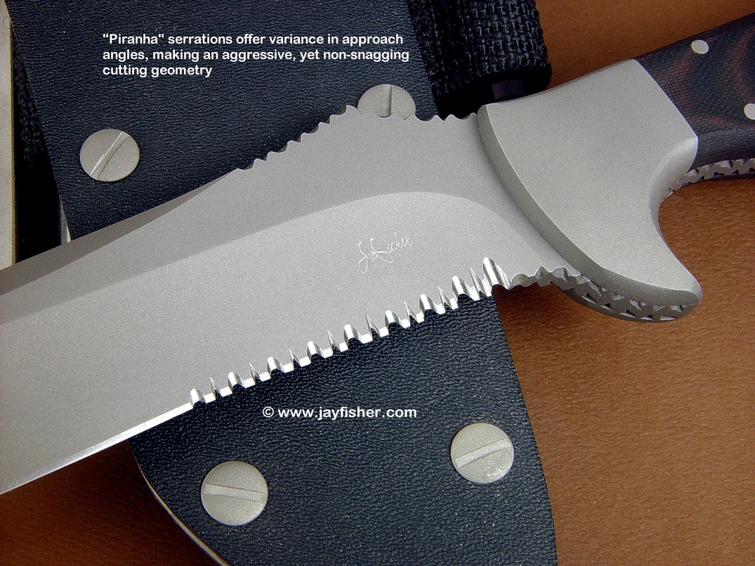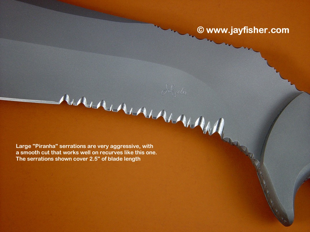 - Serrations subtract from the overall regular straight cutting edge length of the knife.