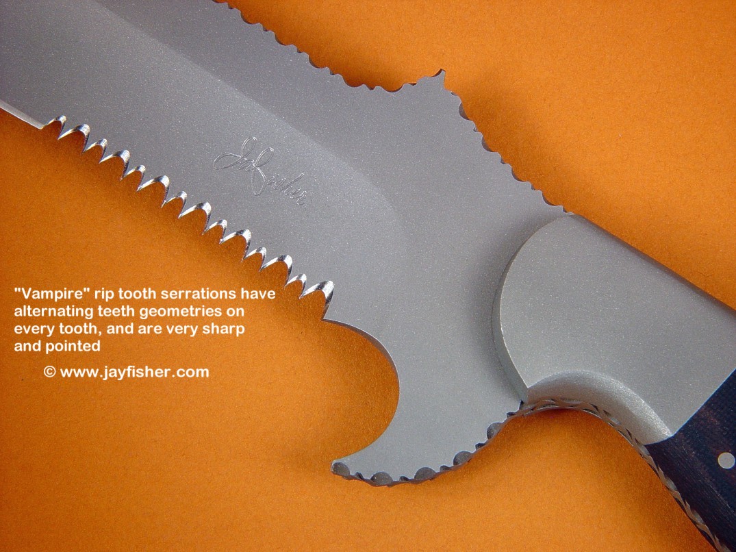 Extremely sharp and aggressive Vampire rip-tooth serrations on