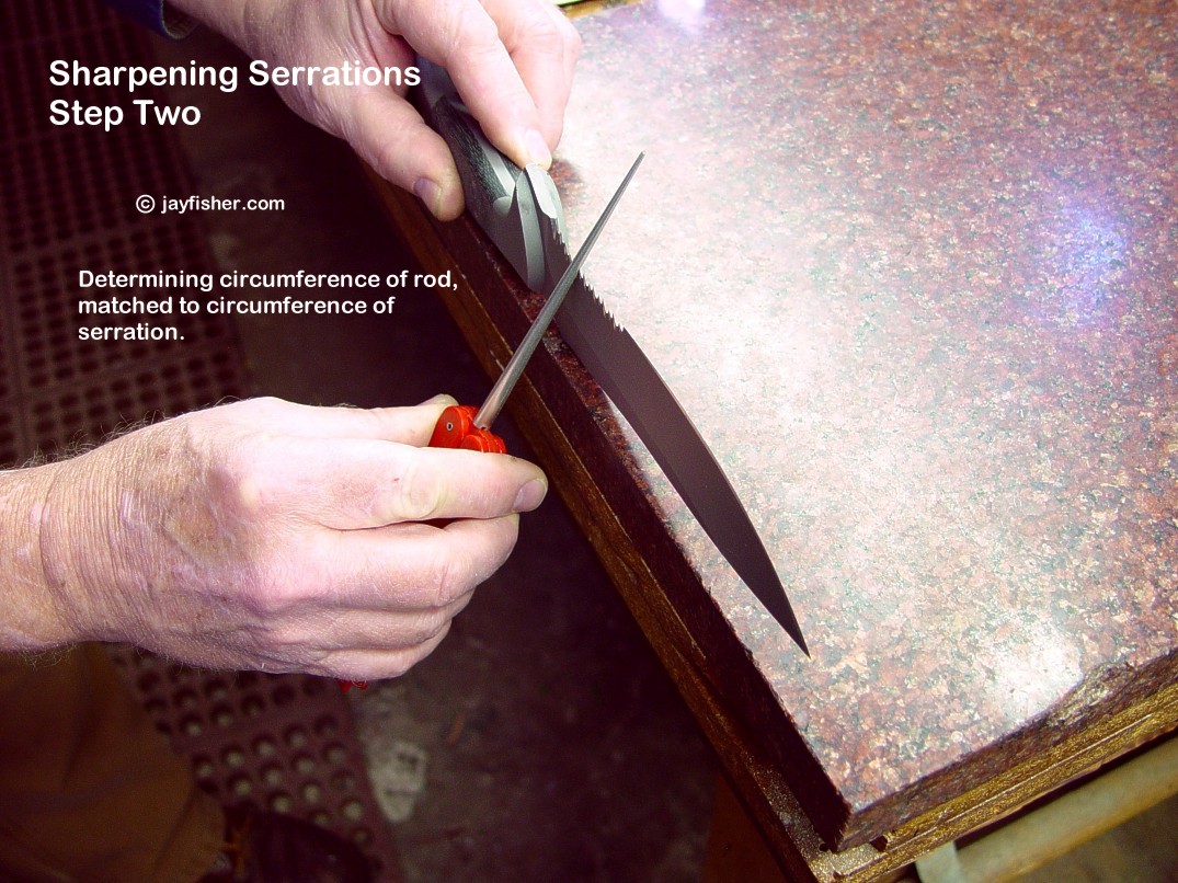 Determine the diameter of the serration on your knife. Lay the sharpening rod against the serrations