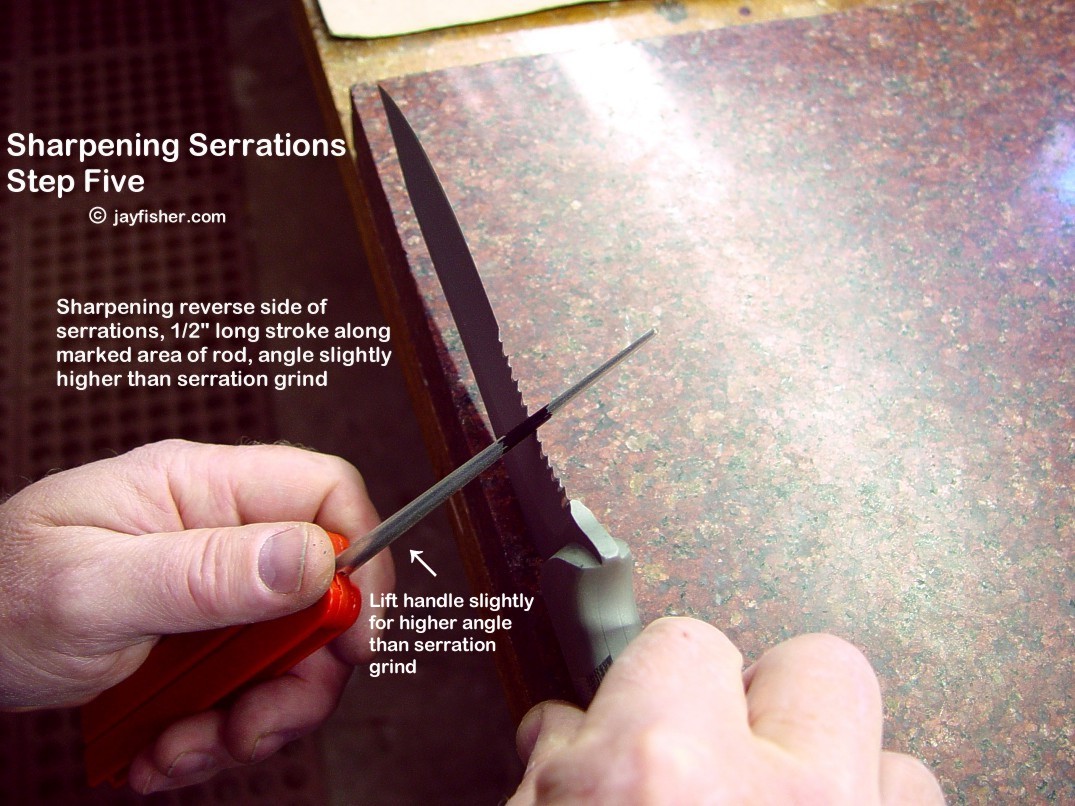angle that the main serration is ground. Once you can feel that the rod is laying in the main grind of