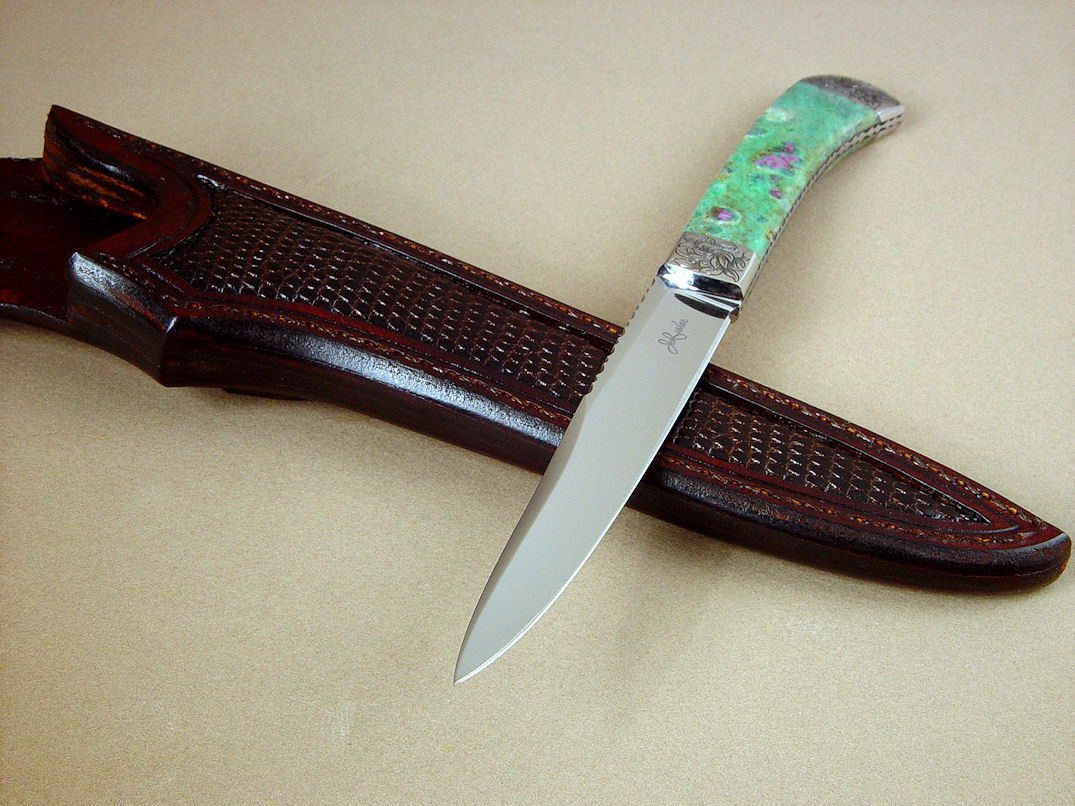 beautiful gemstone. I made the blade in ATS-34 high molybdenum, high