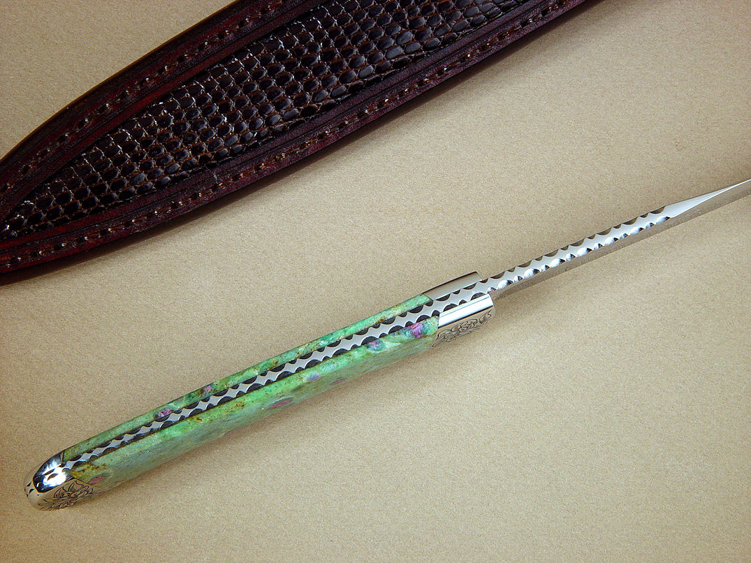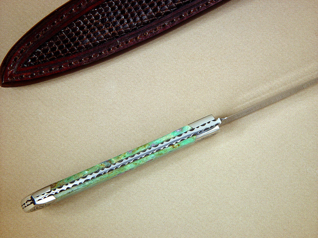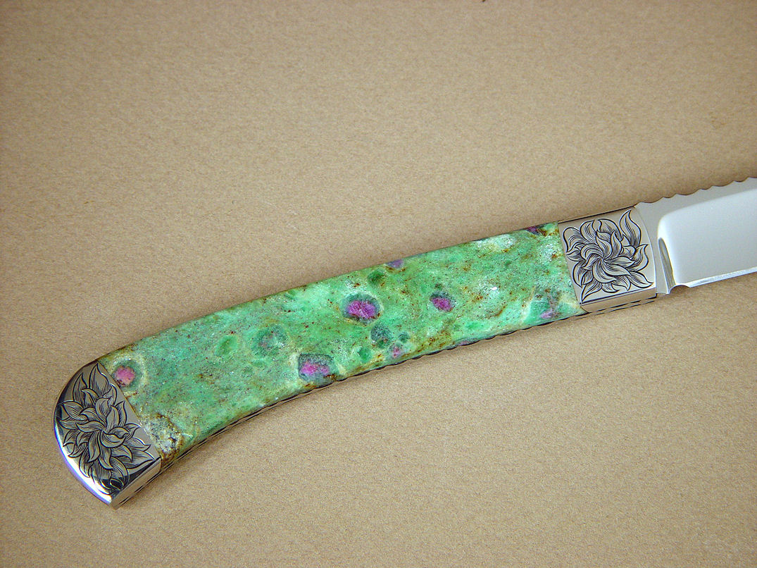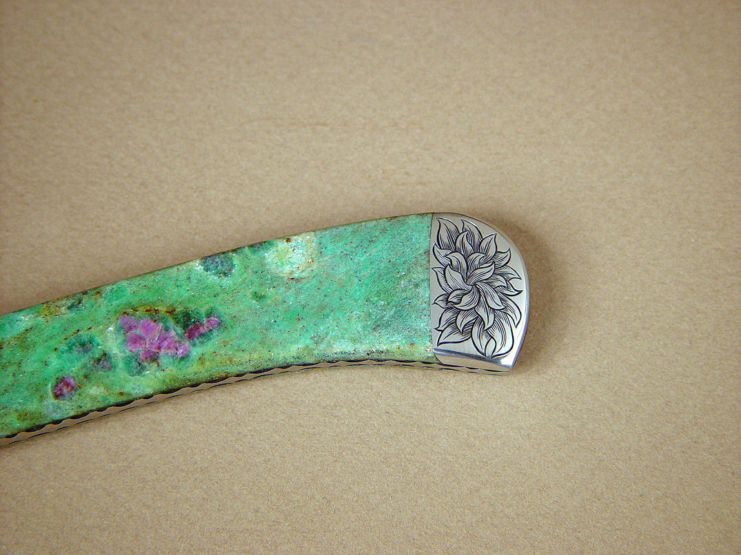 gemstone handle scales. The matrix of this stone is green chromium